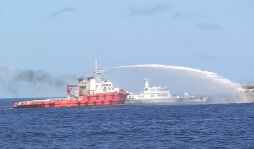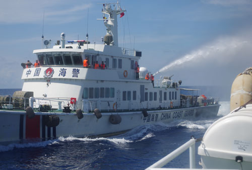 Tàu Trung Quốc dùng vòi rồng công suất cao phun nước vào tàu Cảnh sát biển Việt Nam ngày 3-5 vừa qua