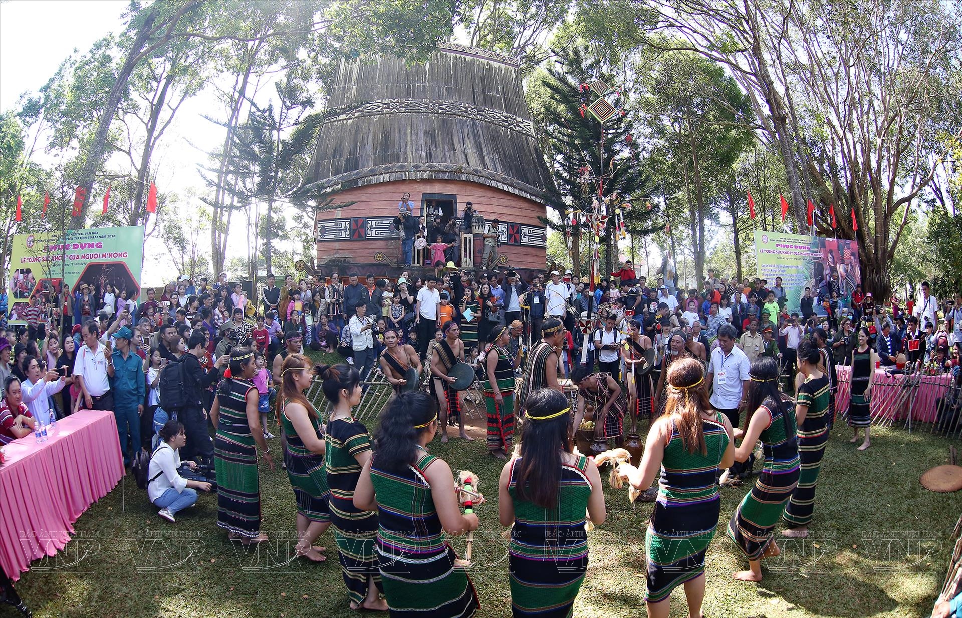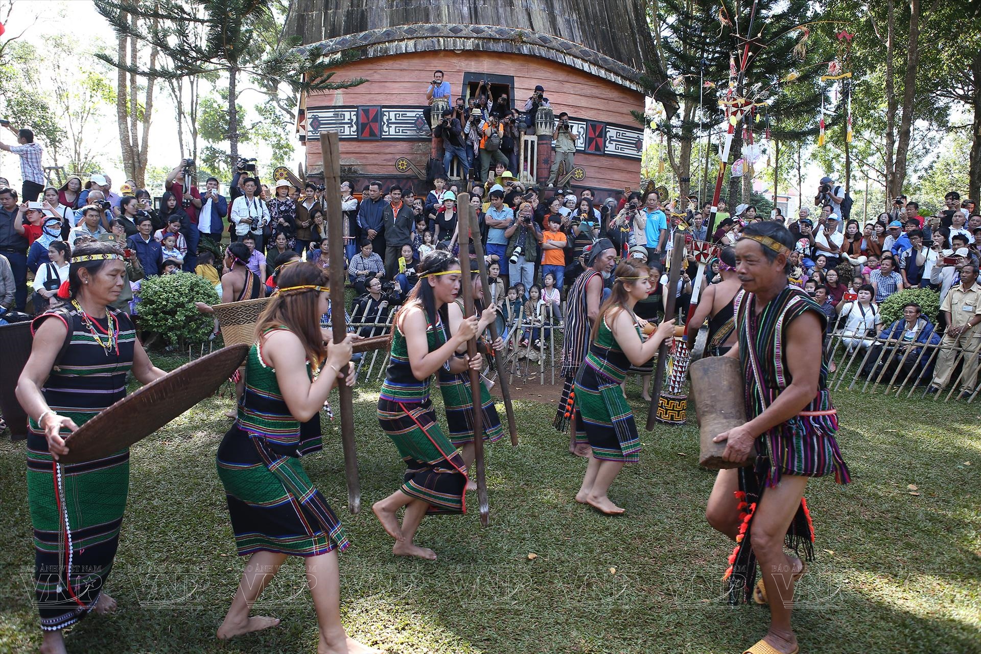 Đồng bào M'nông mặc trang phục truyền thống trong Lễ cúng sức khỏe