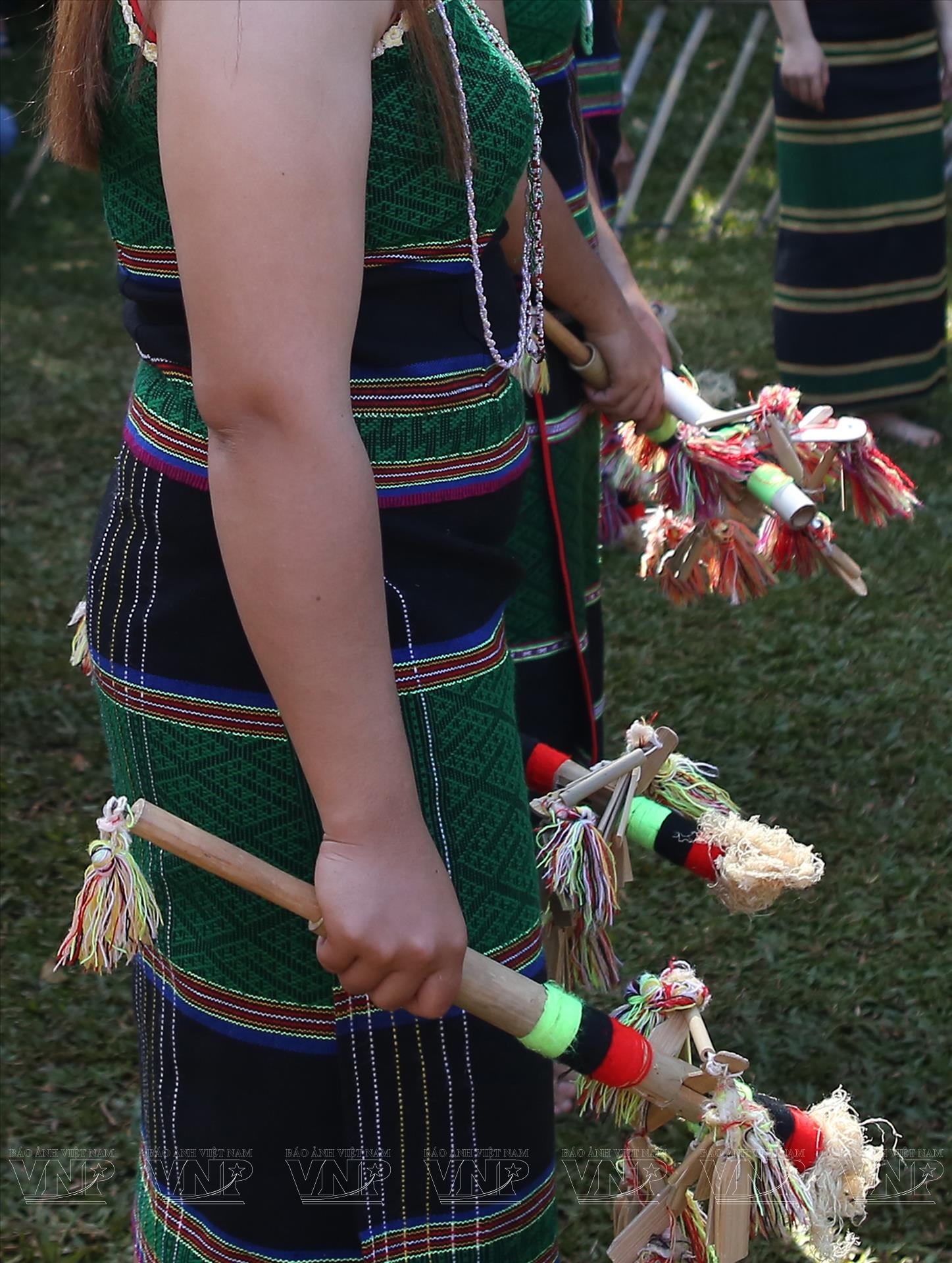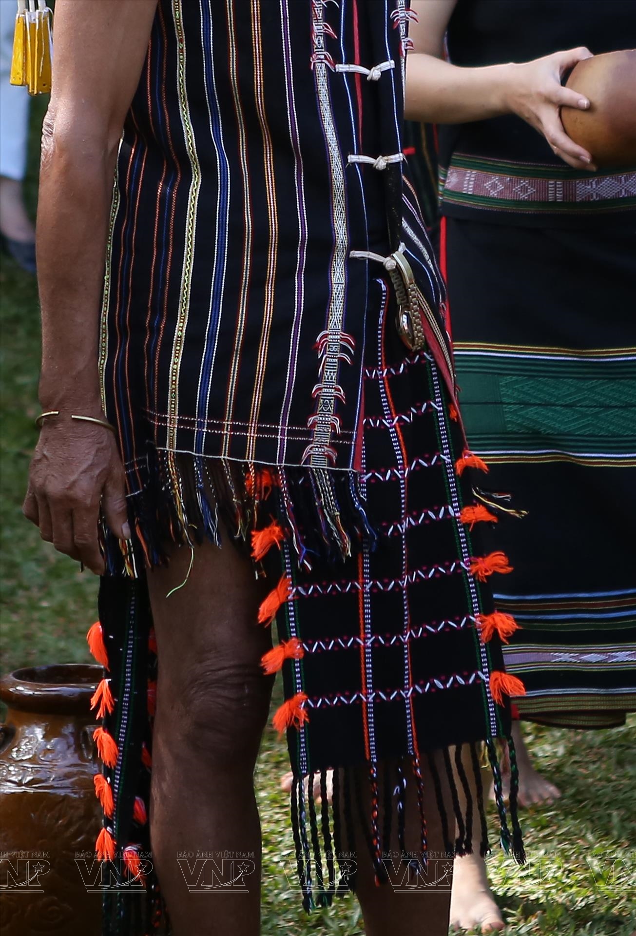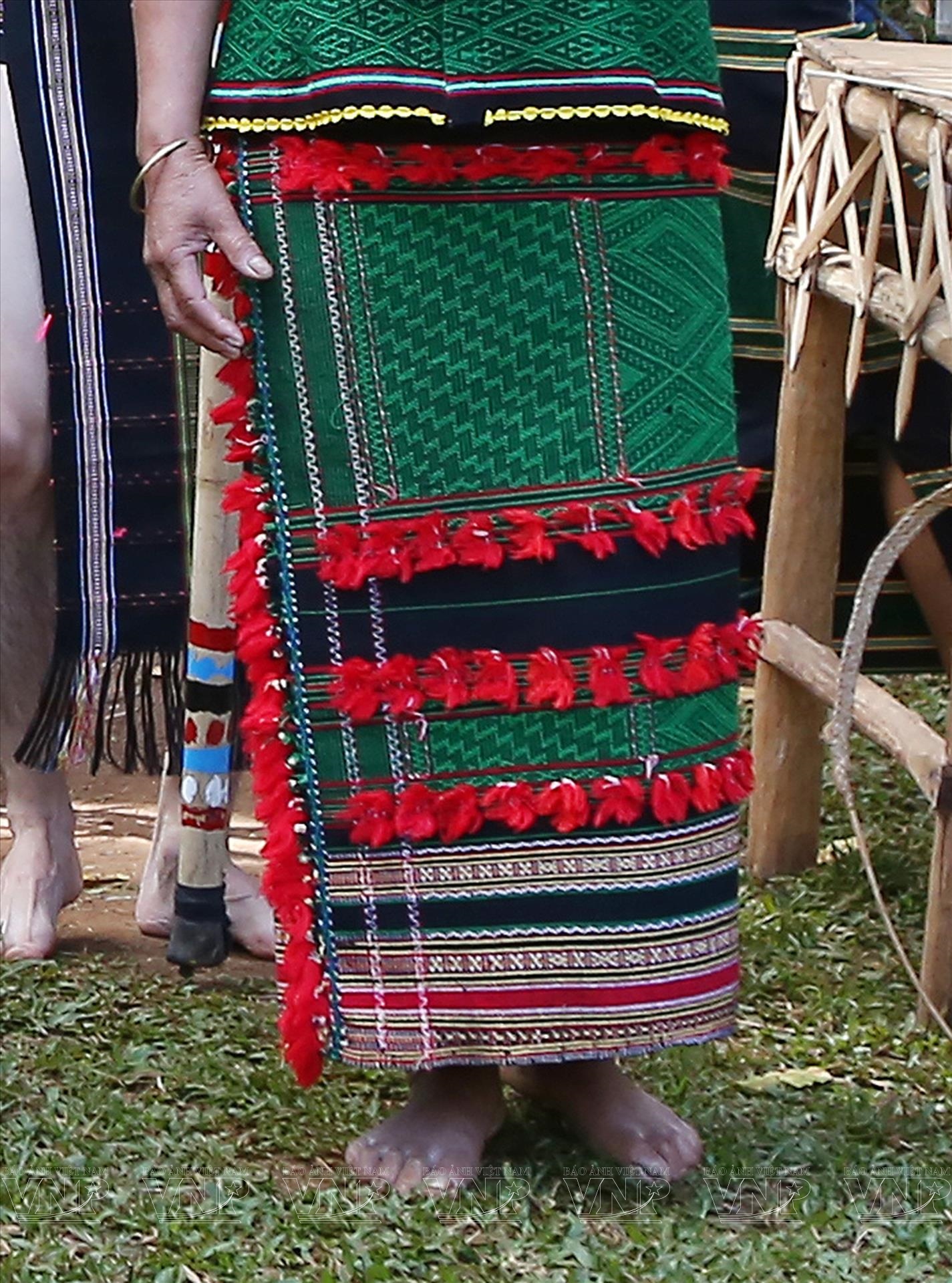 Trong những dịp lễ hội, già làng, chủ lễ, thầy cúng mặc áo khố hoa, nhóm đánh chiêng mặc khố hoa cởi trần, những phụ nữ tham gia biểu diễn mặc váy hoa và áo cộc tay để tiện đánh chiêng, múa hát. Đối với những người tham dự là nam thì mặc khố còn là nữ thì mặc váy và áo.