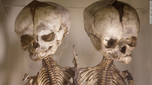 ![]() Bộ xương dính liền của một cặp song sinh tại Bảo tàng Bệnh lí học Bart. |