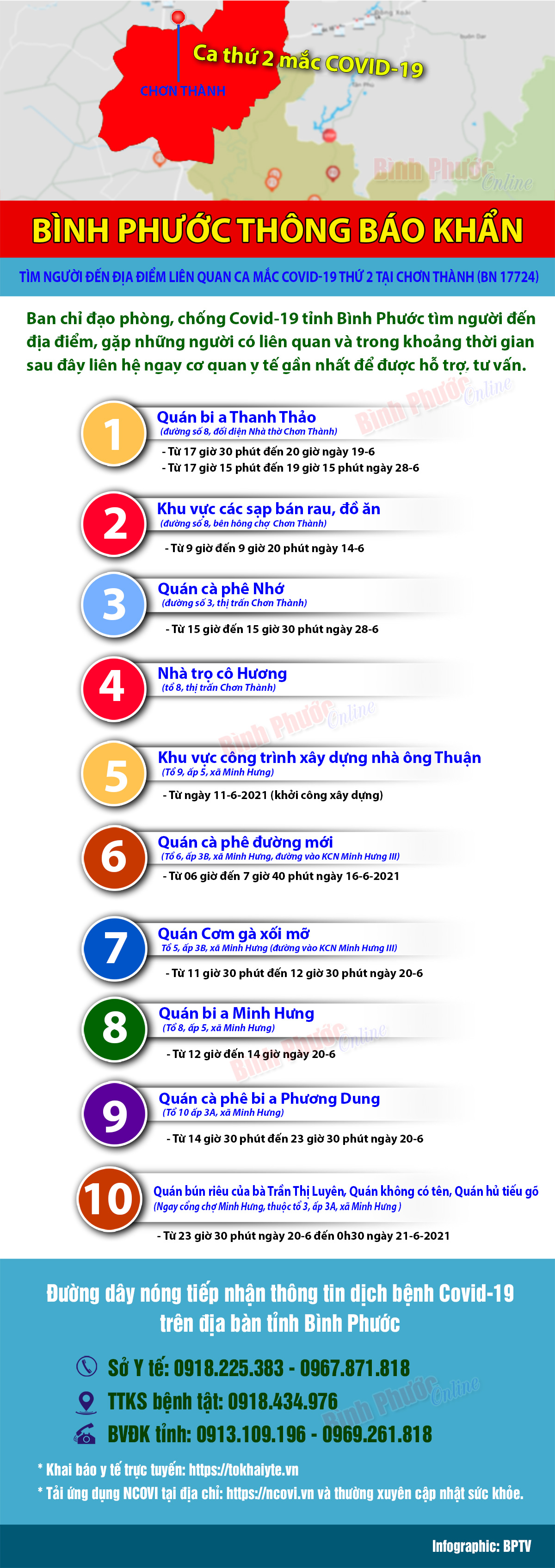Thông báo khẩn tìm người đến những địa điểm liên quan ca mắc Covid-19 thứ 2 tại Bình Phước