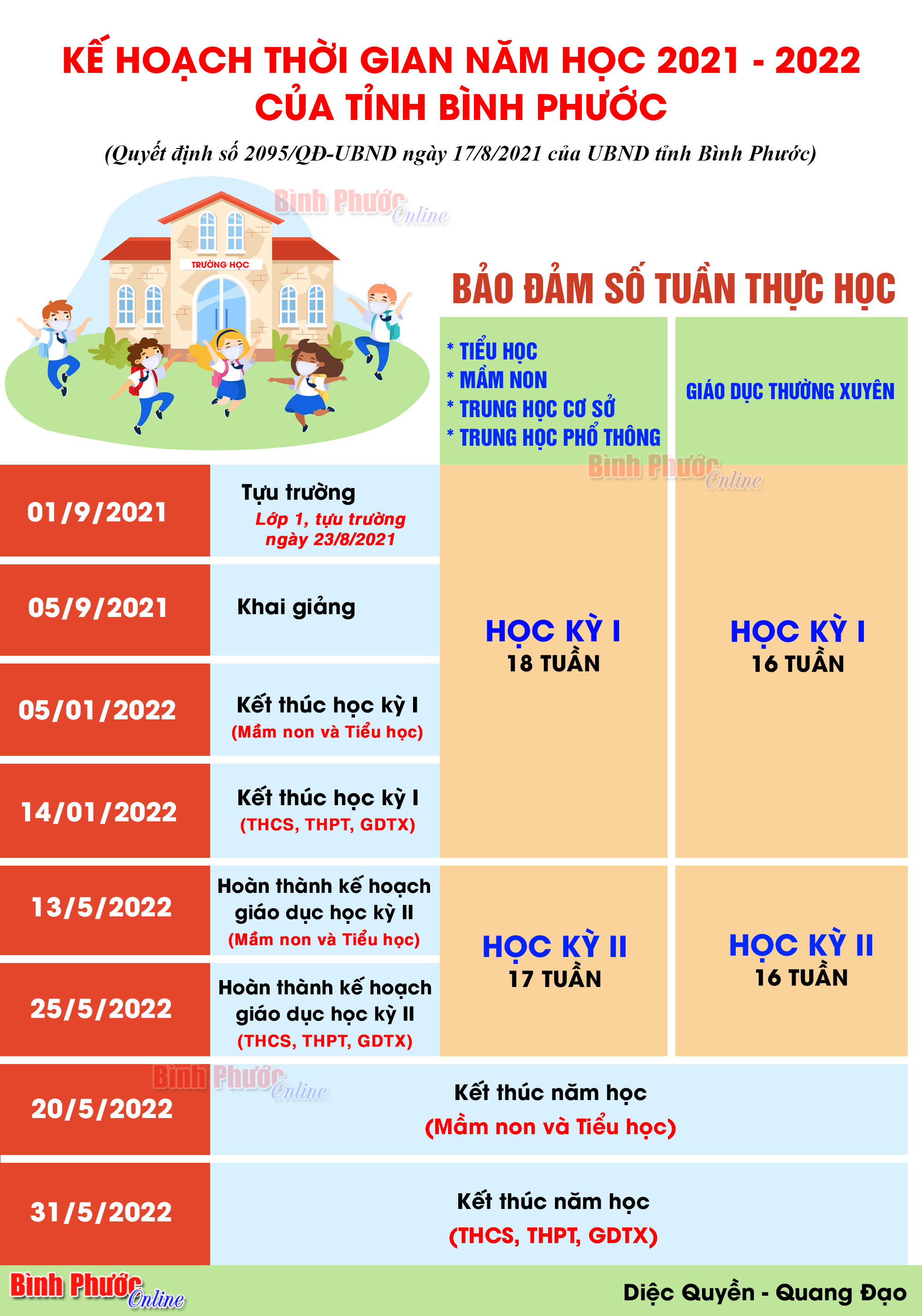 Kế hoạch thời gian năm học 2021 - 2022 của tỉnh Bình Phước