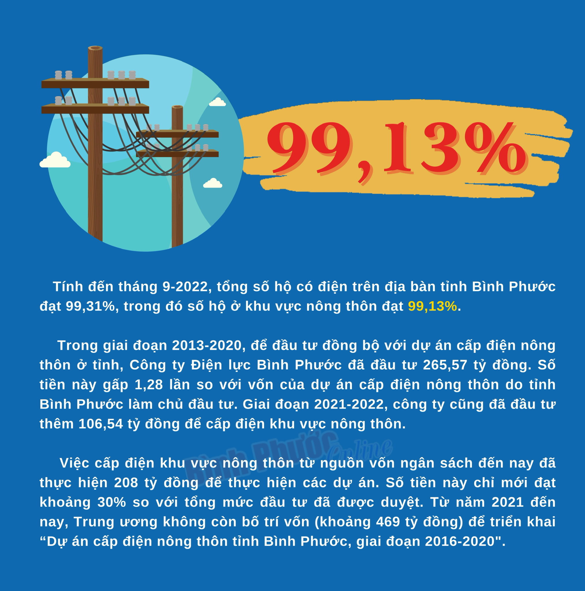 99,13% hộ dân khu vực nông thôn ở Bình Phước đã có điện
