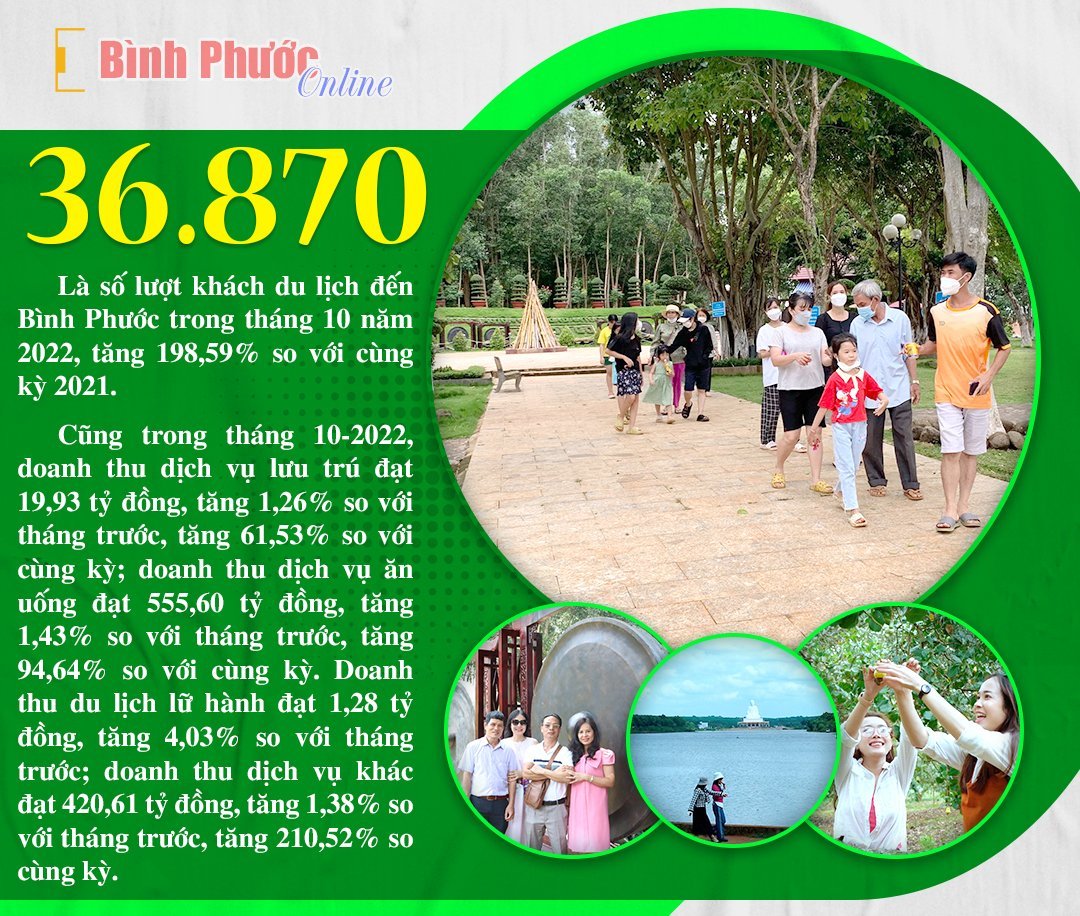 Khách du lịch đến Bình Phước trong tháng 10-2022 đạt 36.870 lượt