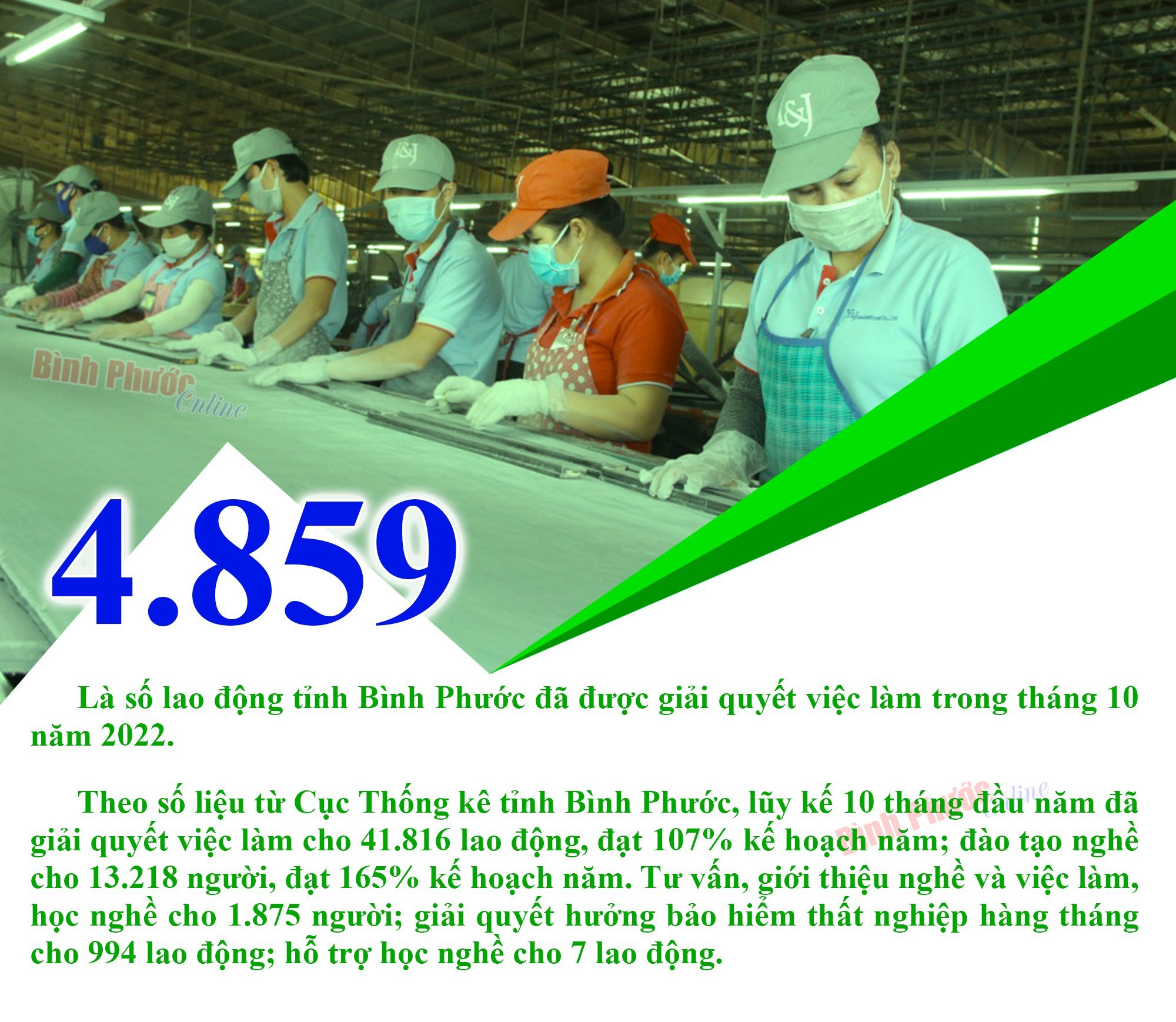 Tháng 10-2022, Bình Phước giải quyết việc làm cho 4.859 lao động
