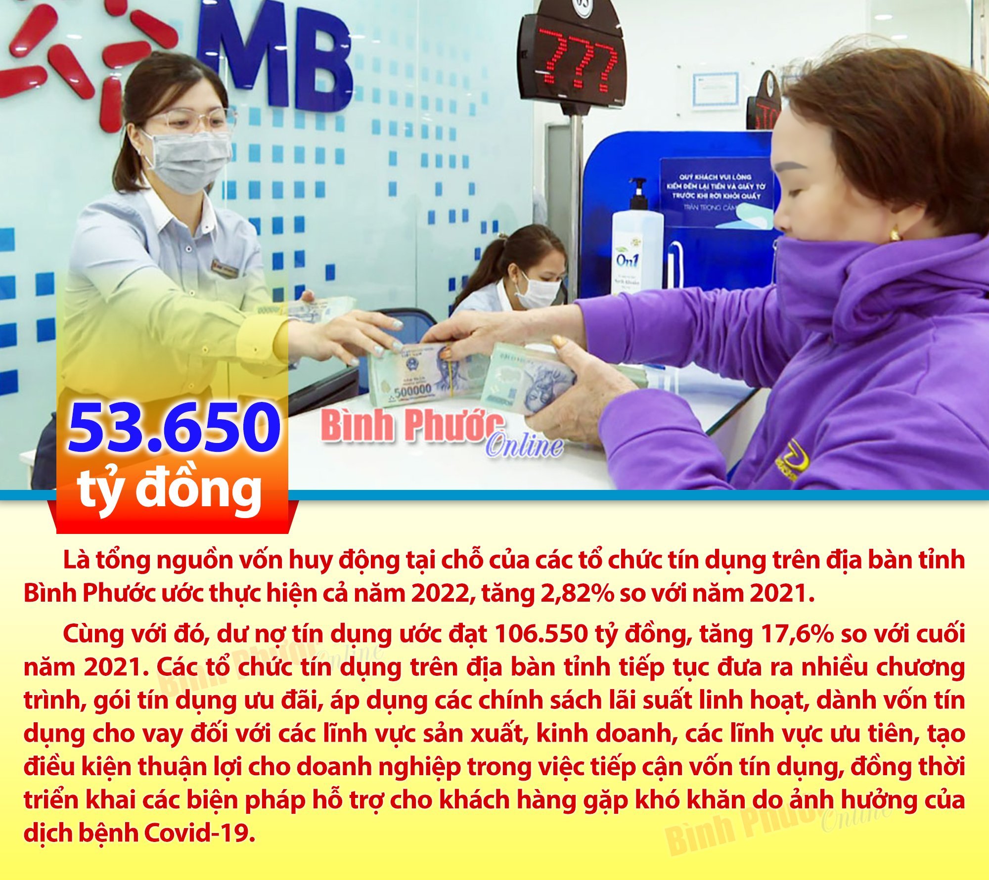 Tổng nguồn vốn huy động của các tổ chức tín dụng tỉnh Bình Phước năm 2022 ước đạt 53.650 tỷ đồng