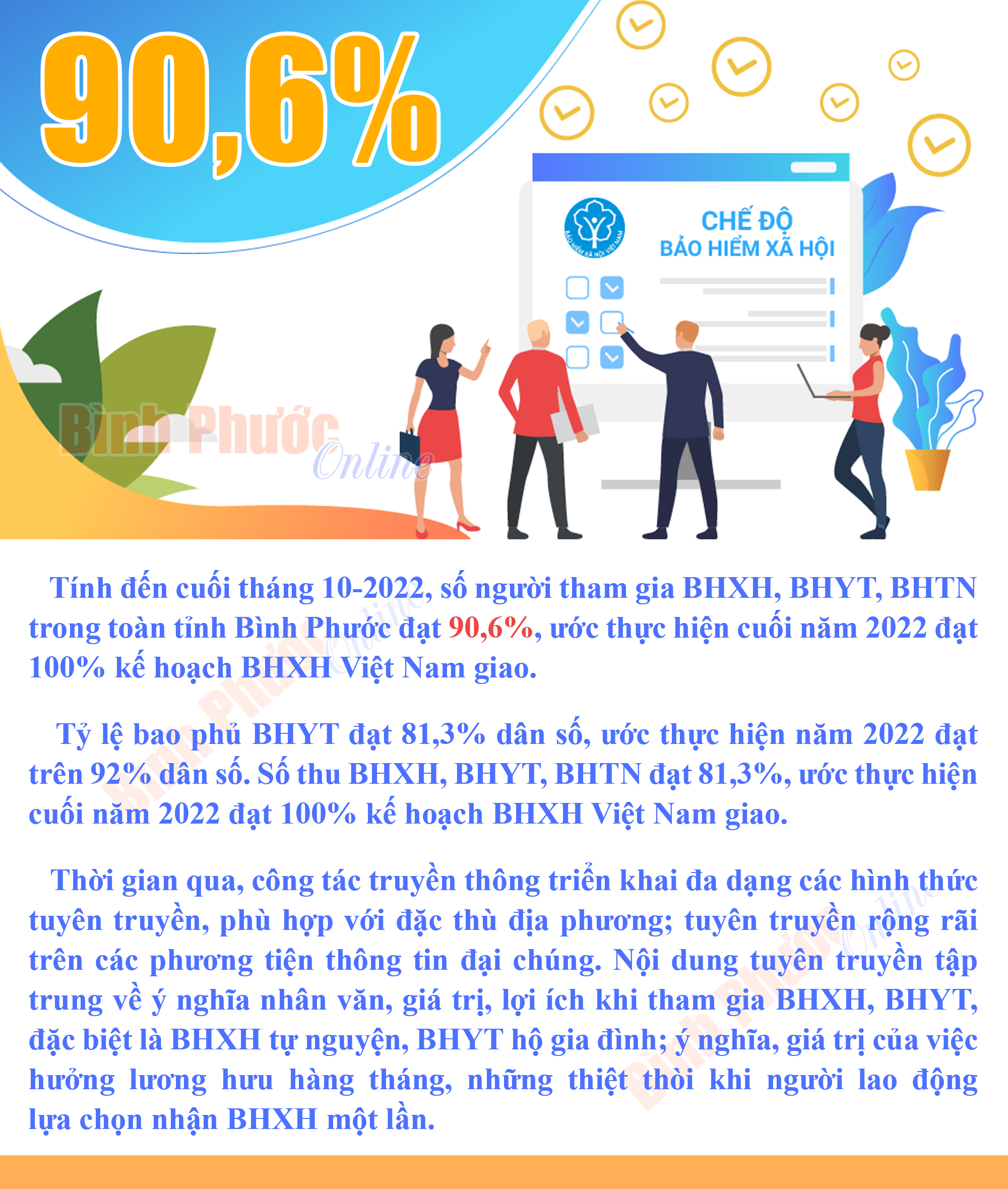 Bình Phước: Số người tham gia BHXH, BHYT, BHTN đạt 90,6%