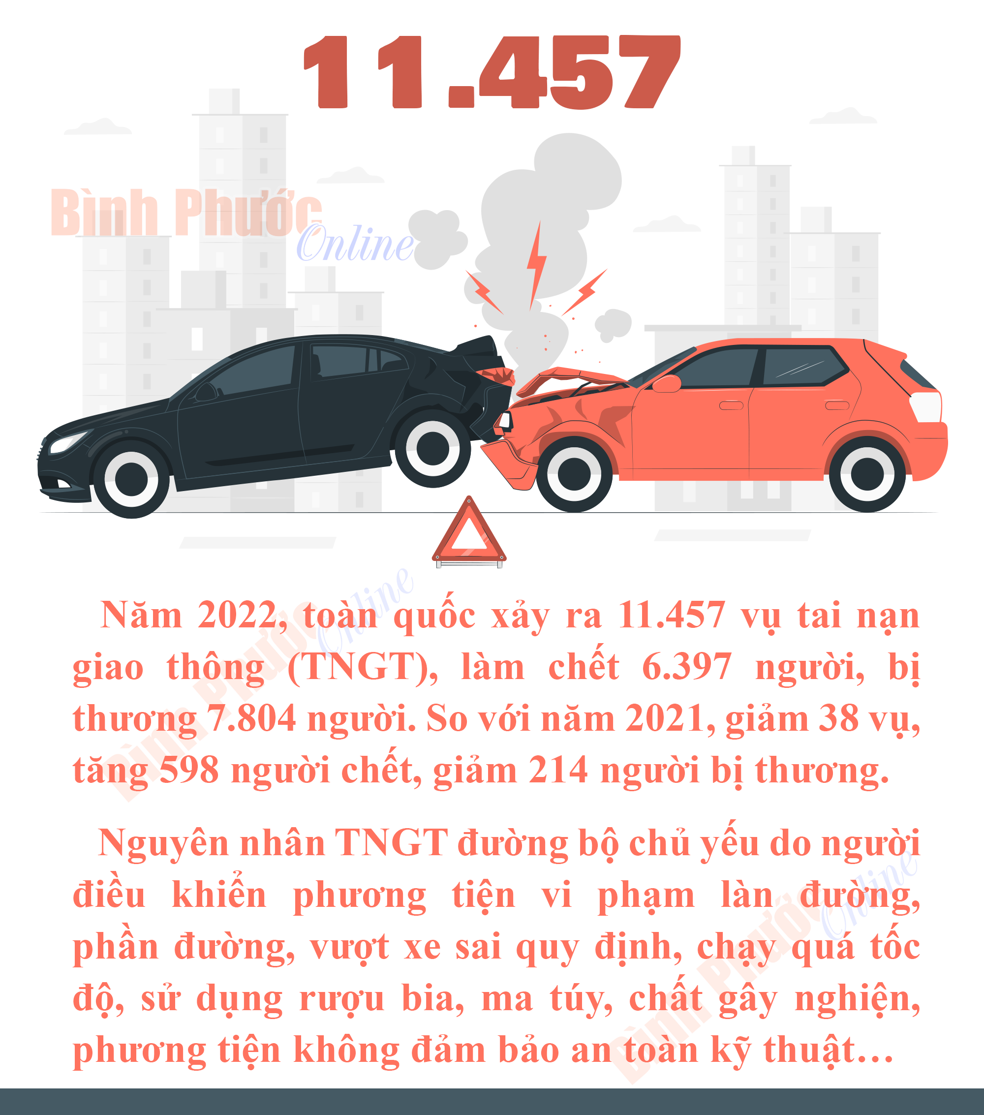 Năm 2022, toàn quốc xảy ra 11.457 vụ tai nạn giao thông