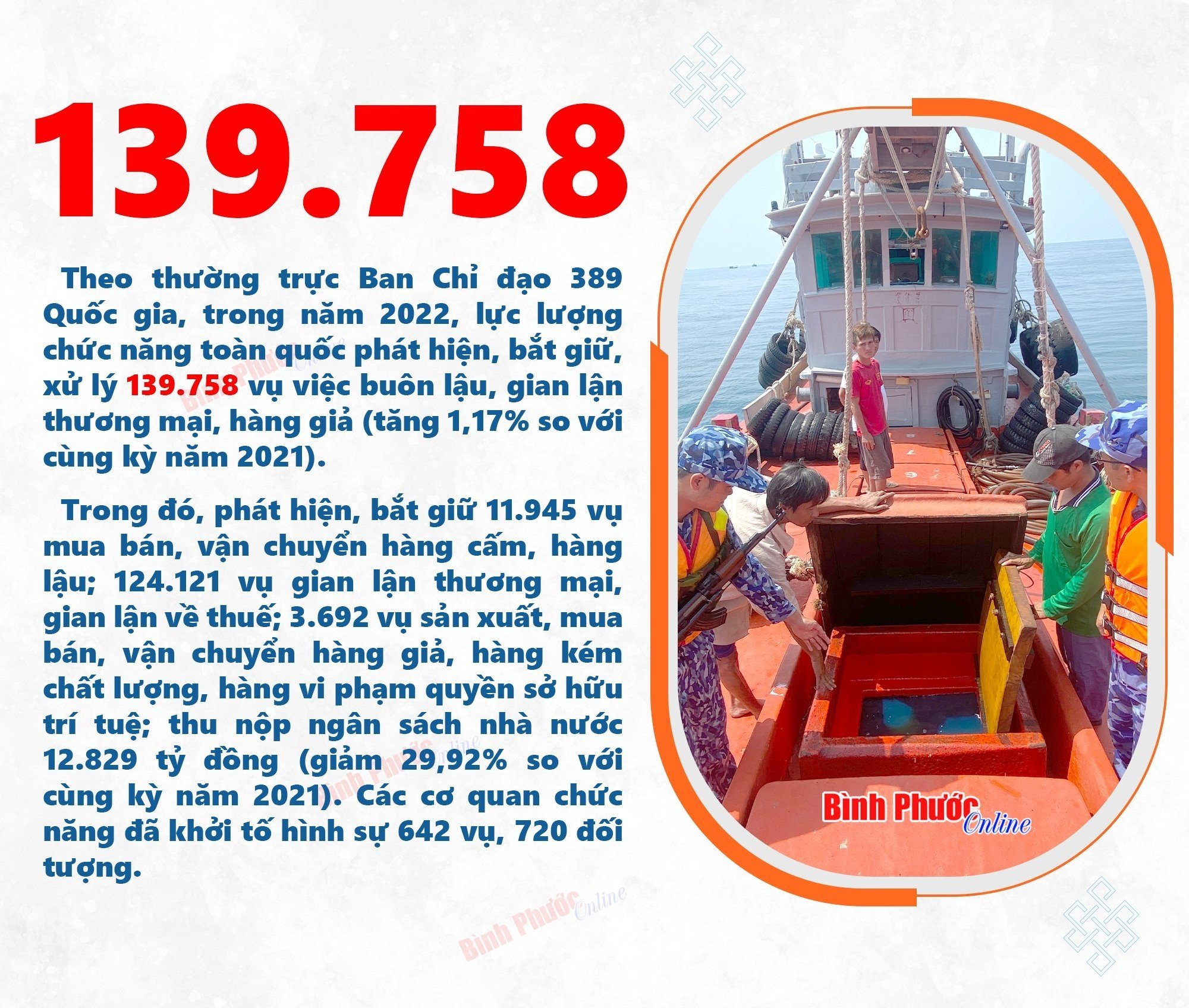 Năm 2022: Xử lý 139.758 vụ việc vi phạm buôn lậu, gian lận thương mại và hàng giả