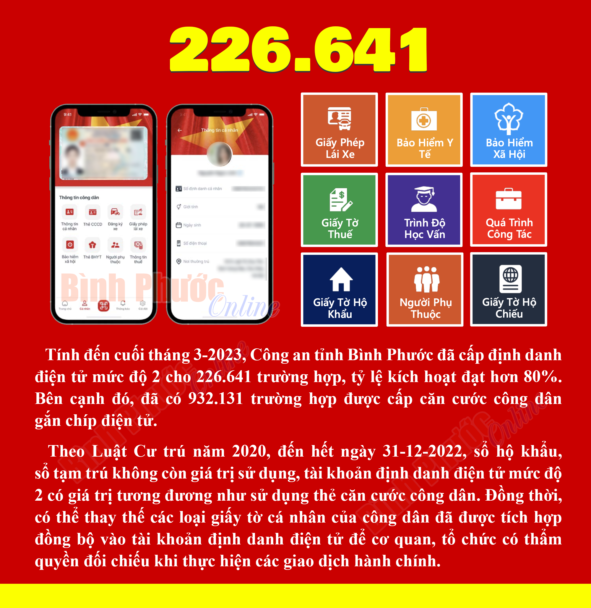 Bình Phước: Đã có hơn 226 ngàn trường hợp được cấp định danh điện tử mức độ 2