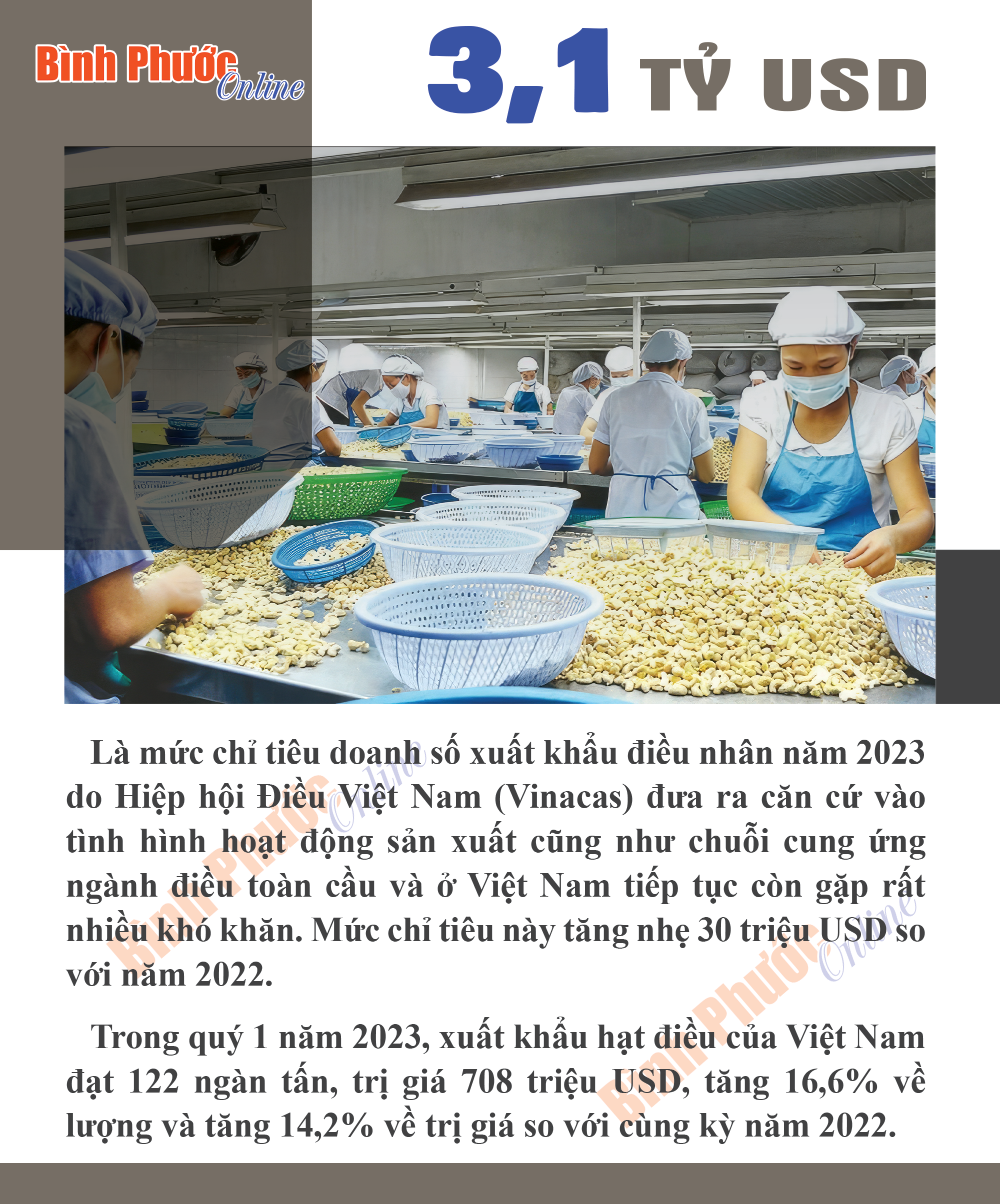 Ngành điều Việt Nam đặt mục tiêu xuất khẩu 3,1 tỷ USD trong năm 2023