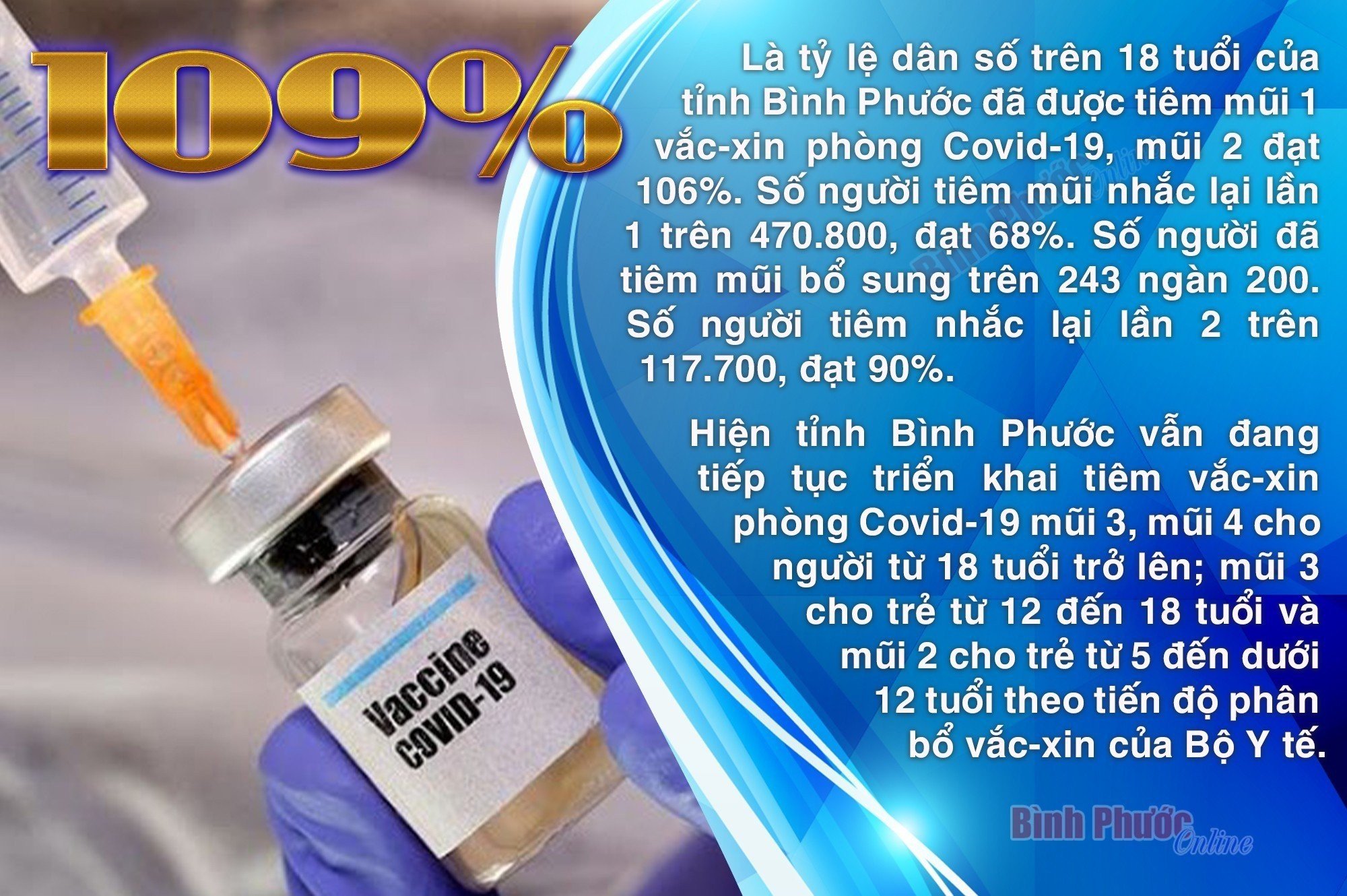 Bình Phước: Tỷ lệ dân số trên 18 tuổi tiêm mũi 1 vắc-xin phòng Covid-19 đạt 109%
