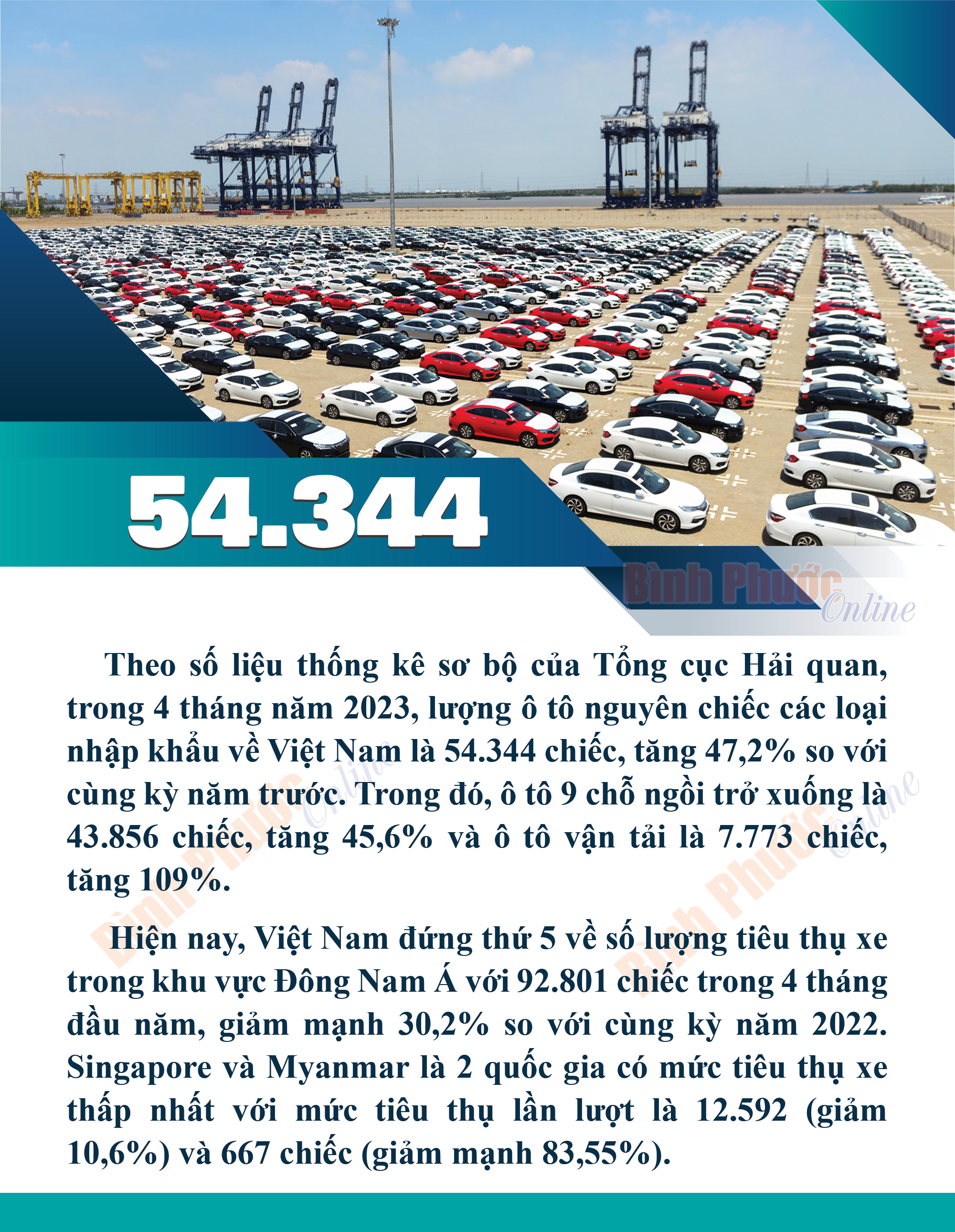 54.344 ô tô được nhập Việt Nam về trong 4 tháng đầu năm 2023