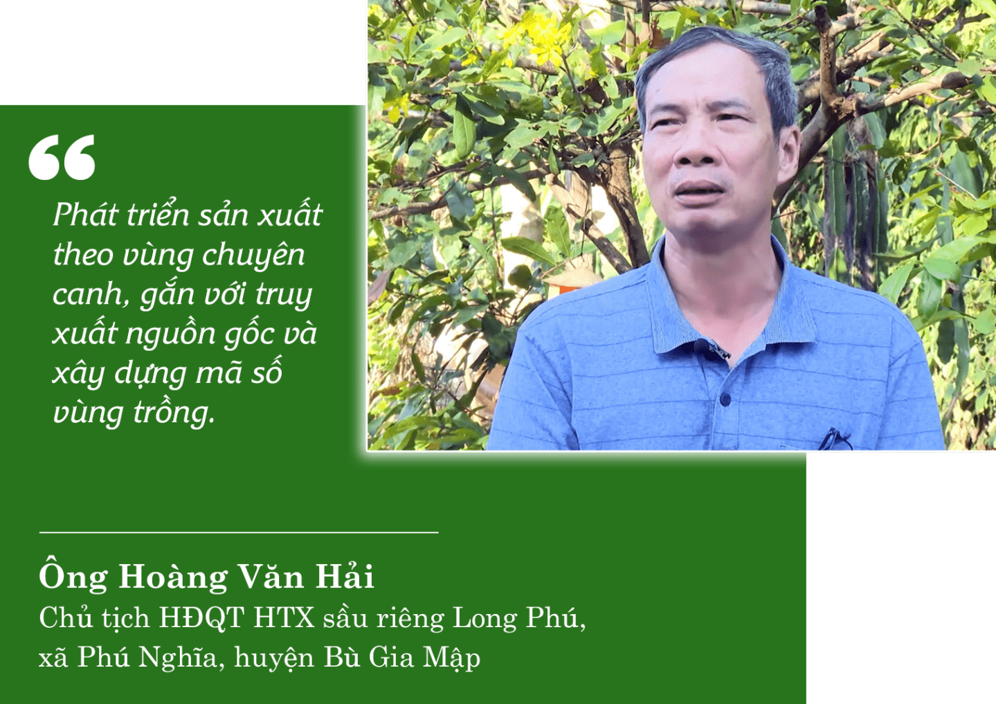 Ông Hoàng Văn Hải, Chủ tịch HĐQT Hợp tác xã sầu riêng Long Phú, xã Phú Nghĩa, huyện Bù Gia Mập khẳng định: Khi sản phẩm trái sầu riêng đạt chuẩn OCOP sẽ được người tiêu dùng tin tưởng, mang đến thị trường tiêu thụ ổn định, từ đó khuyến khích người nông dân áp dụng khoa học kỹ thuật cao vào quá trình trồng, chăm sóc cây sầu riêng thay thế tư duy sản xuất cũ. Đồng thời tạo cơ hội cho sản phẩm của địa phương vươn ra thị trường lớn, tạo điều kiện cho cây sầu riêng phát triển bền vững.