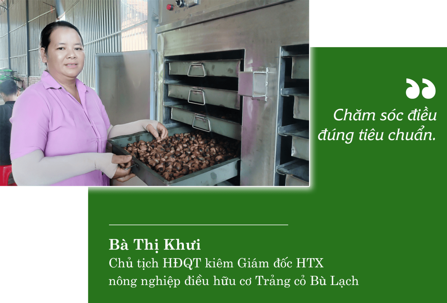 Bà Thị Khưi, Chủ tịch HĐQT kiêm Giám đốc HTX nông nghiệp điều hữu cơ trảng cỏ Bù Lạch, huyện Bù Đăng cho rằng: Trong điều kiện diễn biến thời tiết ngày càng khó đoán như hiện nay, việc chăm sóc đạt tiêu chuẩn sẽ giúp cây trồng bớt phụ thuộc vào thời tiết. Ngoài ra, để nâng cao giá trị cây điều, Nhà nước cần có giải pháp từng bước thực hiện tái canh các giống điều có năng suất cao, chất lượng hạt tốt phù hợp với điều kiện thời tiết, thổ nhưỡng tại địa phương, đặc biệt là trong vùng đồng bào dân tộc thiểu số.