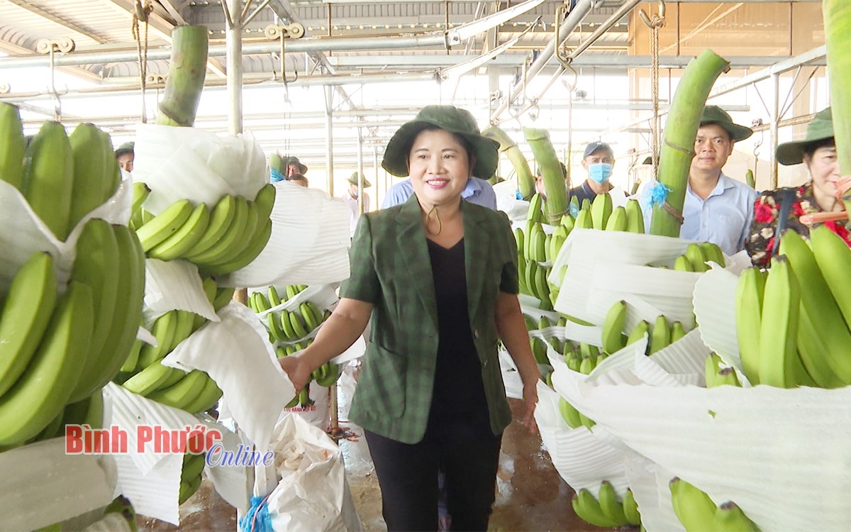 Chủ tịch UBND tỉnh Trần Tuệ Hiền khảo sát thực tế Dự án “Sản xuất, chế biến và kinh doanh sản phẩm từ chuối” tại xã Thiện Hưng, huyện Bù Đốp - Ảnh: TL |