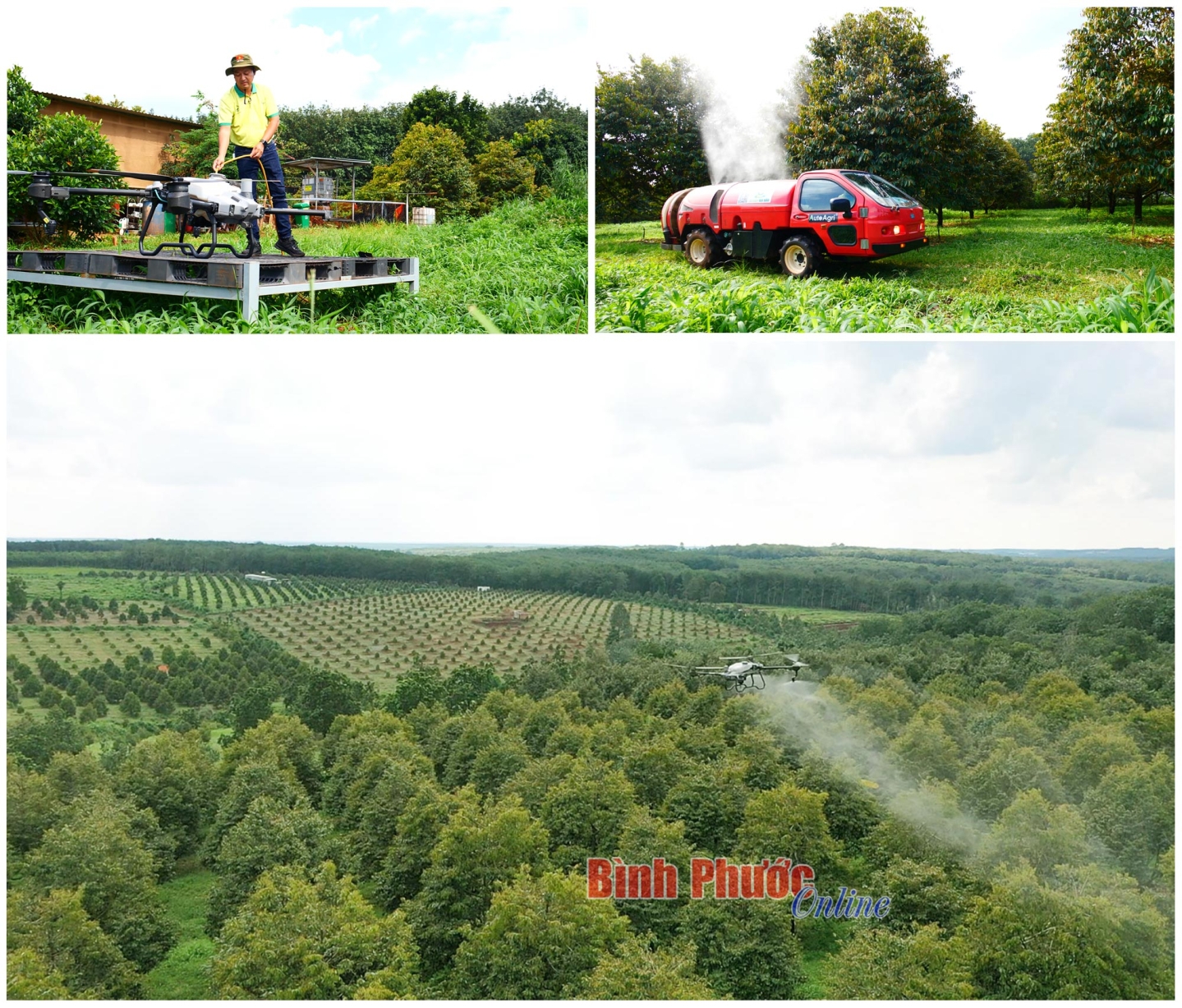 Ứng dụng khoa học công nghệ vào khâu chăm sóc vườn cây của nông dân Bình Phước - Ảnh: Tiến Dũng |