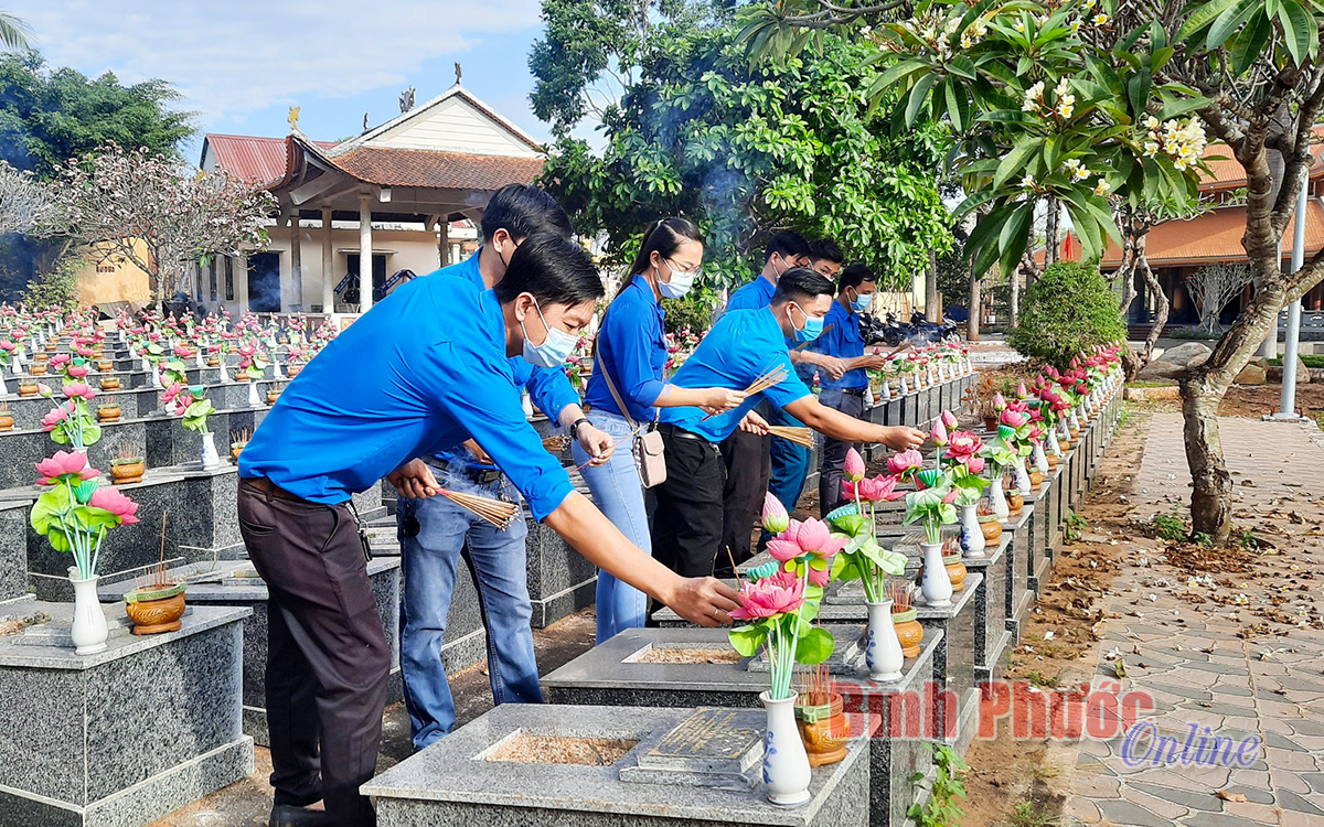 Cán bộ, đoàn viên, thanh niên thị xã Phước Long viếng Nghĩa trang liệt sĩ và thắp hương trên mộ phần các liệt sĩ
