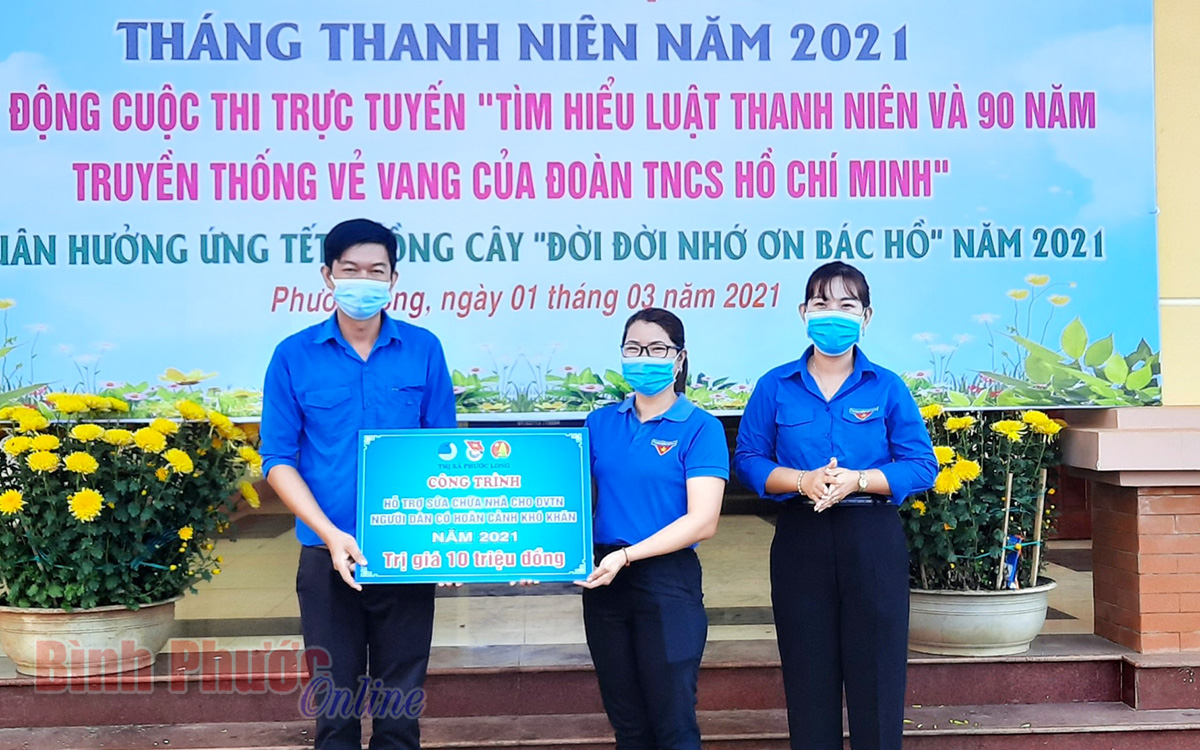 Nằm trong khuôn khổ lễ khởi động, Thị đoàn Phước Long đã phát động cuộc thi trực tuyến tìm hiểu “Luật Thanh niên và 90 năm truyền thống vẻ vang của Đoàn TNCS Hồ Chí Minh”. Thông qua hình thức thi trực tuyến trên fanpage “Thị đoàn Phước Long”, cuộc thi nhằm tuyên truyền, giáo dục cán bộ Đoàn - Hội - Đội, đoàn viên, thanh niên, học sinh về quá trình ra đời, phát triển và truyền thống vẻ vang của tổ chức Đoàn, niềm vinh dự, tự hào khi là người đoàn viên TNCS Hồ Chí Minh. Bên cạnh đó, Thị đoàn cũng đã trao tặng 1.000 cây xanh cho các xã, phường; tặng công trình “Bồn rửa tay cho em” trị giá 10 triệu đồng cho Trường mầm non Sao Mai, phường Long Phước.