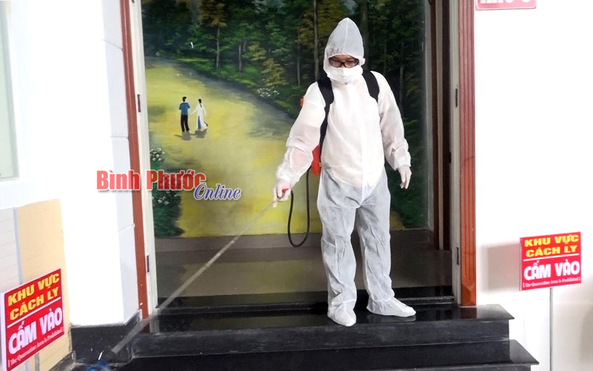 Trung tâm y tế huyện Chơn Thành thực hiện phun xịt sát khuẩn khu vực cách ly đảm bảo an toàn