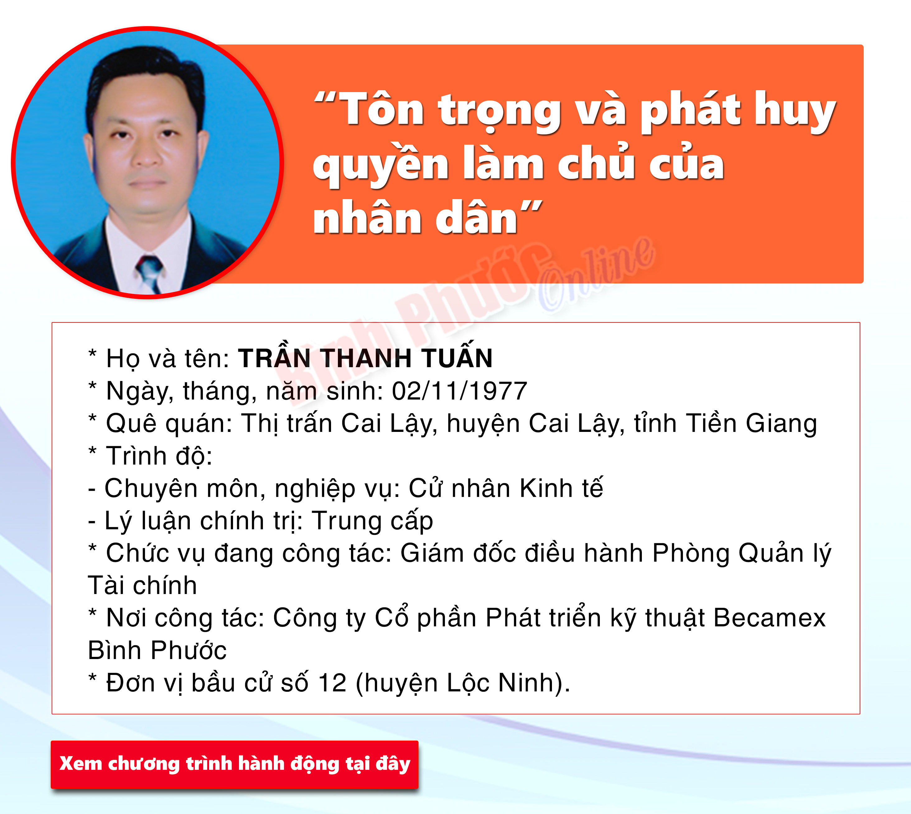 Chương trình hành động của ứng cử đại biểu Hội đồng nhân dân tỉnh khóa X - TRẦN THANH TUẤN