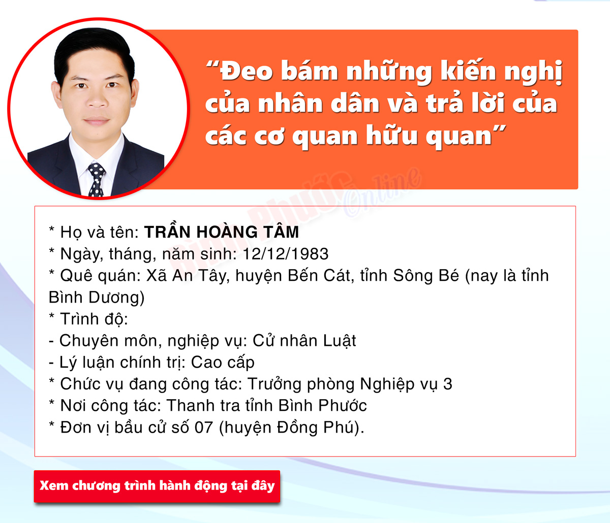 Chương trình hành động của ứng cử đại biểu Hội đồng nhân dân tỉnh khóa X - TRẦN HOÀNG TÂM