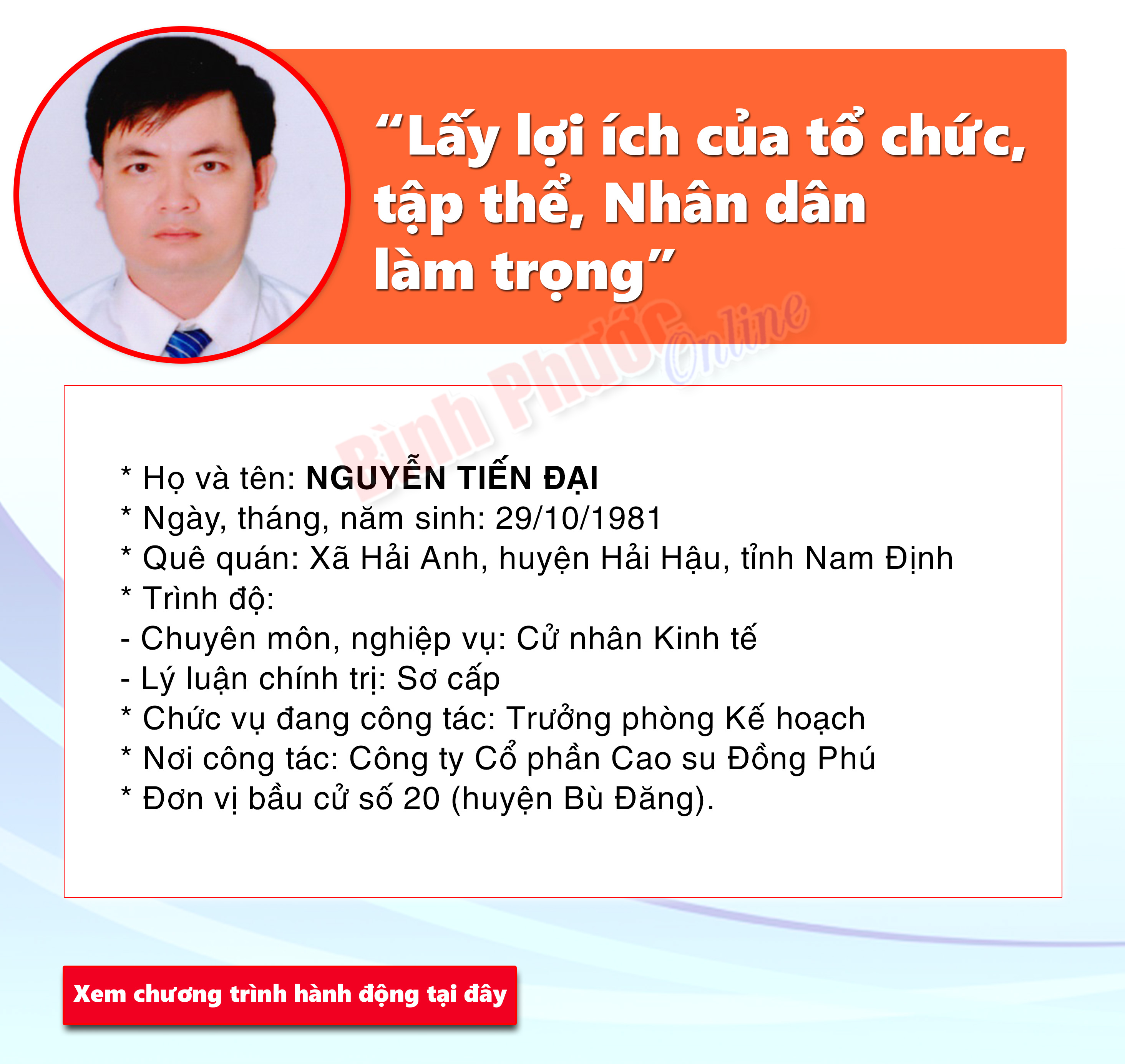 Chương trình hành động của ứng cử đại biểu Hội đồng nhân dân tỉnh khóa X - NGUYỄN TIẾN ĐẠI