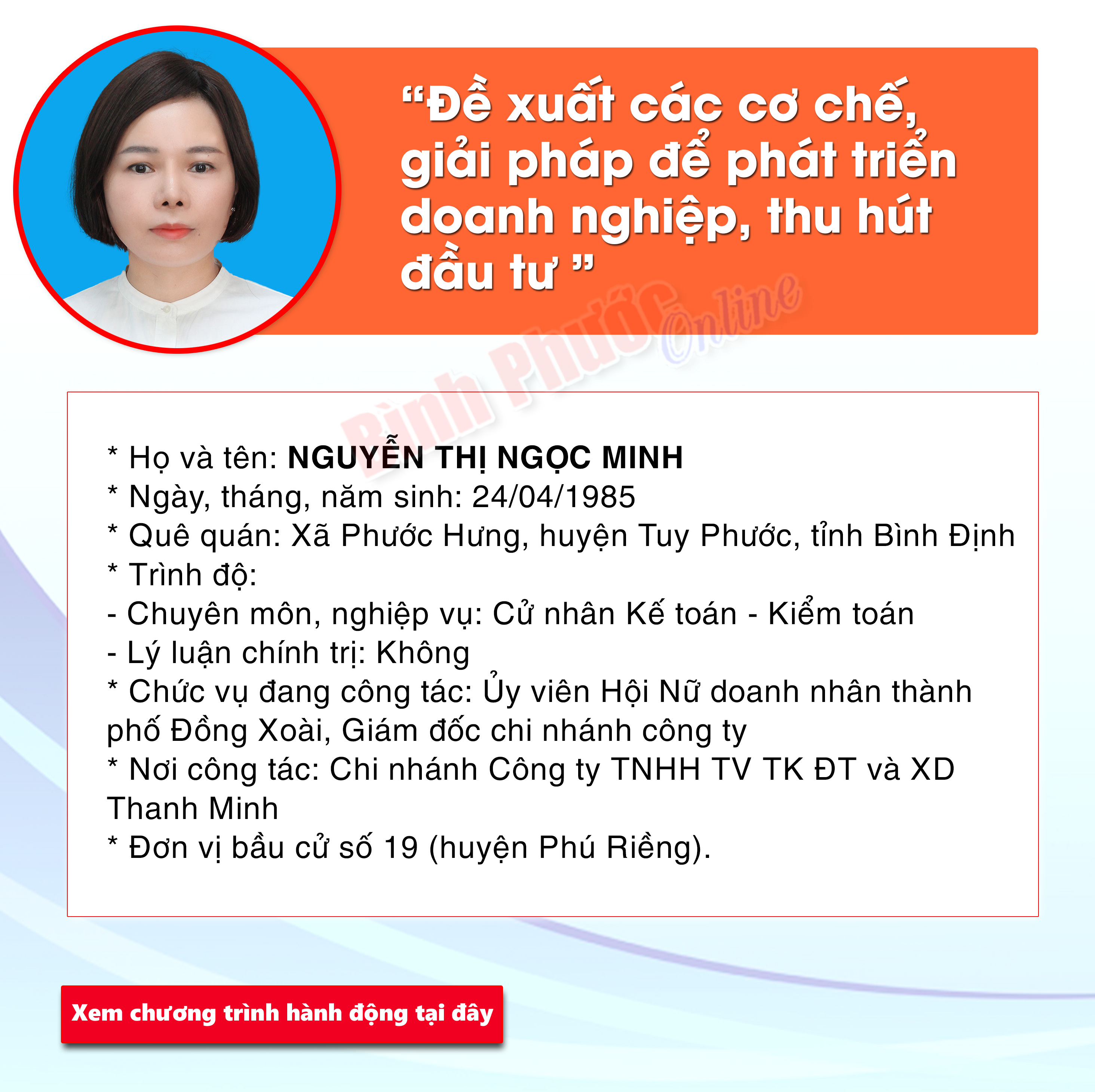Chương trình hành động của ứng cử đại biểu Hội đồng nhân dân tỉnh khóa X - NGUYỄN THỊ NGỌC MINH