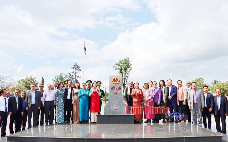 Tại khu vực X16 thuộc ấp Thạnh Tây, xã Lộc Tấn, huyện Lộc Ninh, ranh giới giữa tỉnh Bình Phước, Việt Nam với tỉnh Tbong Khmum, Vương quốc Campuchia, sau khi chào xã giao tại khu vực Cây độc lập, đoàn đã tham quan các công trình ghi dấu ấn hành trình cứu nước của Thủ tướng Campuchia Hun Sen cách đây 45 năm, như: di tích điểm cất giấu vũ khí, điểm gặp dân quân và nhân dân Việt Nam, điểm làm việc xã đội Lộc Tấn (nay là nhà văn hóa xã Lộc Thạnh, huyện Lộc Ninh).