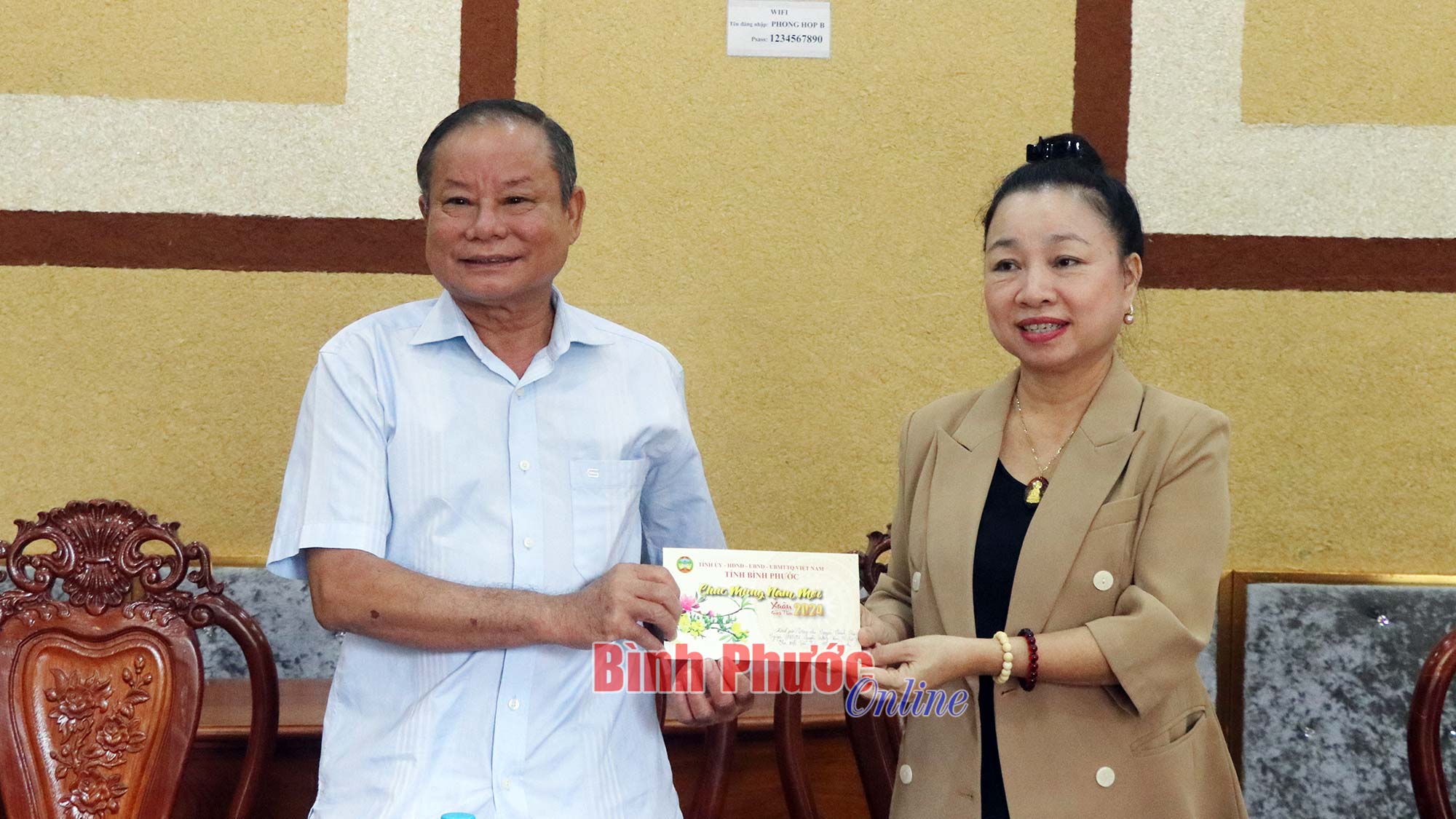 Ủy viên Ban Thường vụ, Trưởng ban Dân vận Tỉnh ủy, Chủ tịch UBMTTQVN tỉnh Lê Thị Xuân Trang gửi lời chúc mừng năm mới đến các cán bộ diện Ban Thường vụ Tỉnh ủy quản lý đã nghỉ hưu, đang tiếp tục công tác tại các hội