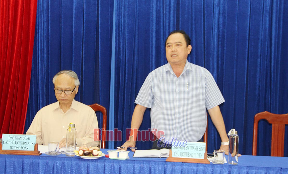 Ông Nguyễn Thanh Bình, Chủ tịch UBND huyện Bù Đăng phát biểu giải trình làm rõ những vấn đề của thành viên đoàn giám sát đặt ra tại buổi giám sát