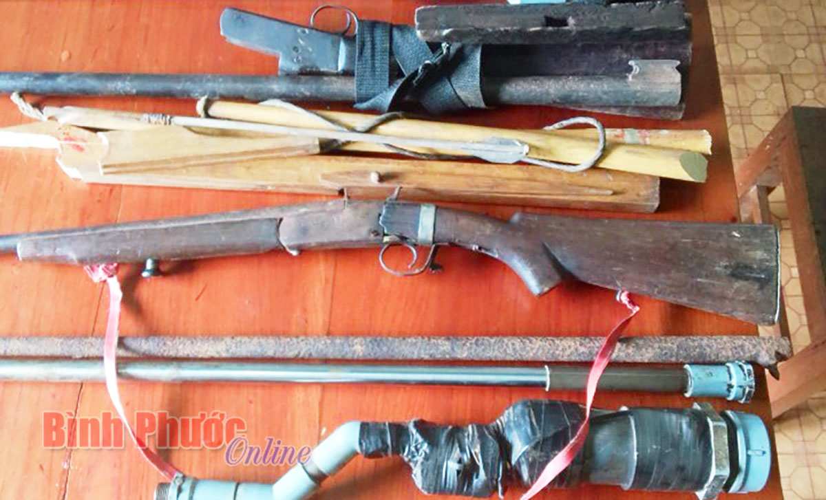 Số vũ khí, công cụ hỗ trợ, vật liệu nổ của người dân huyện Bù Đăng tự nguyện giao nộp cho cơ quan công an