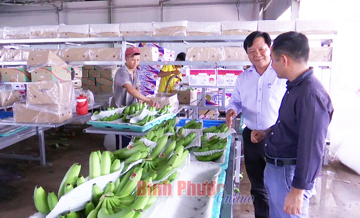 Đoàn đã thăm và tìm hiểu quy trình trồng, thu hoạch, xử lý bảo quản, xuất khẩu chuối của dự án trồng chuối cấy mô được được Công ty cổ phần Cao su Sông Bé liên doanh với Công ty Đông Bắc thực hiện. Dự án này được Công ty cổ phần Cao su Sông Bé thực hiện từ tháng 9-2019 trên cơ sở chuyển đổi diện tích 300 ha cao su già cỗi, năng xuất thấp tại nông trường Nha Bích. Đến nay, Công ty Đông Bắc đã trồng 210 ha chuối cấy mô và nhiều diện tích đã cho thu hoạch. Toàn bộ sản phẩm chuối sau thu hoạch đều được bao tiêu xuất khẩu.
