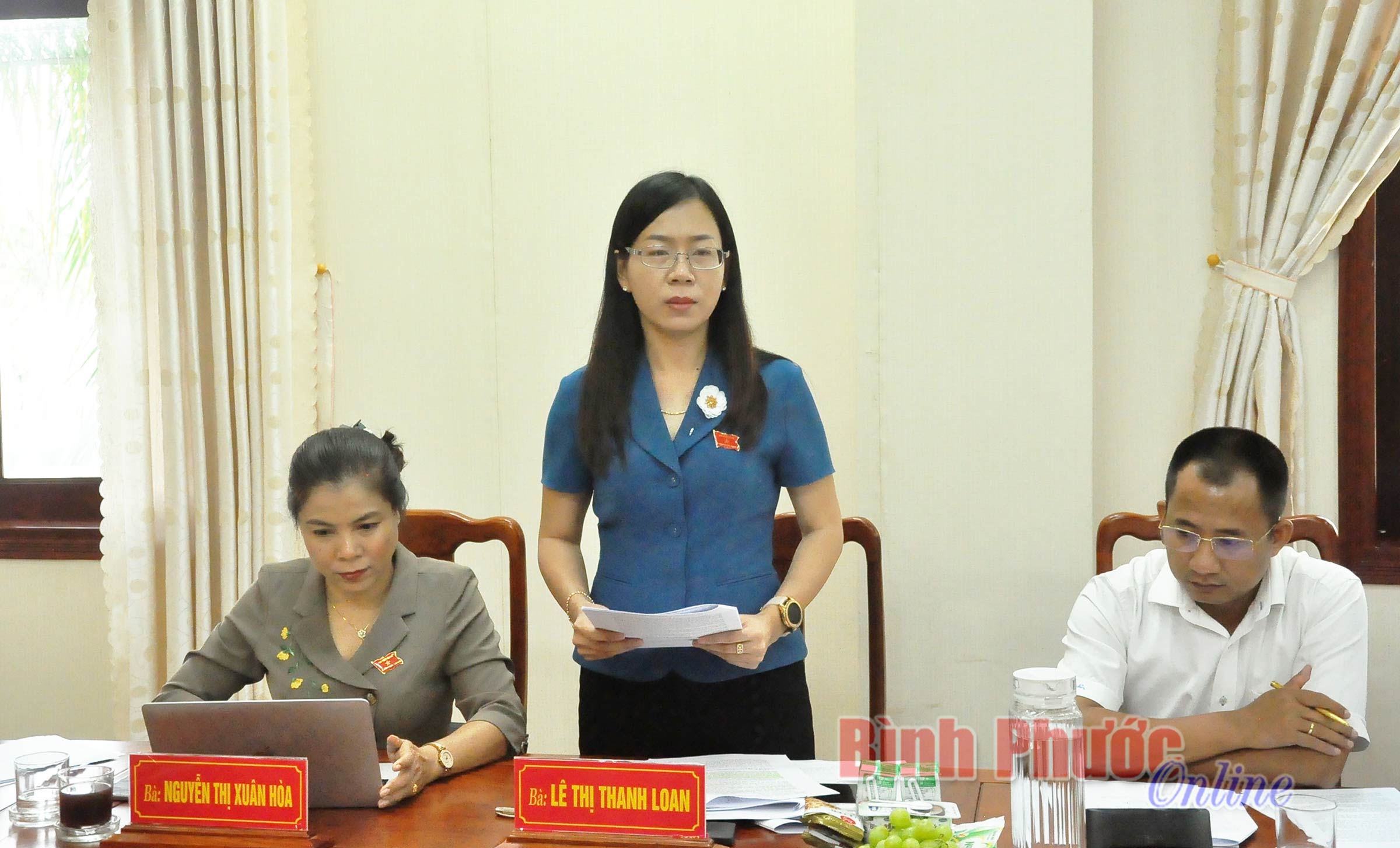 Thành viên Ban Văn hóa - Xã hội HĐND tỉnh Lê Thị Thanh Loan phát biểu đề nghị làm rõ các nội dung liên quan đến việc địa phương thực hiện Quyết định số 1752/QĐ-TTg ngày 30-9-2013 của Thủ tướng Chính phủ