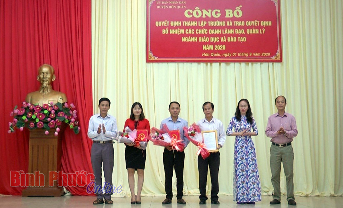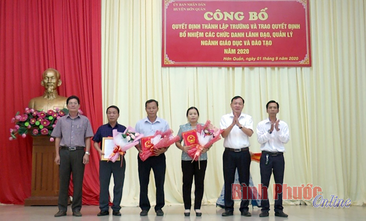 Đợt này UBND huyện công bố 8 đơn vị thành lập trường và sáp nhập điểm lẻ; đồng thời công bố các quyết định thành lập Trường Tiểu học và THCS gồm các trường TH-THCS: Minh Đức; An Khương, An Phú, Tân Hiệp, Tân Lợi, Tân Quan.