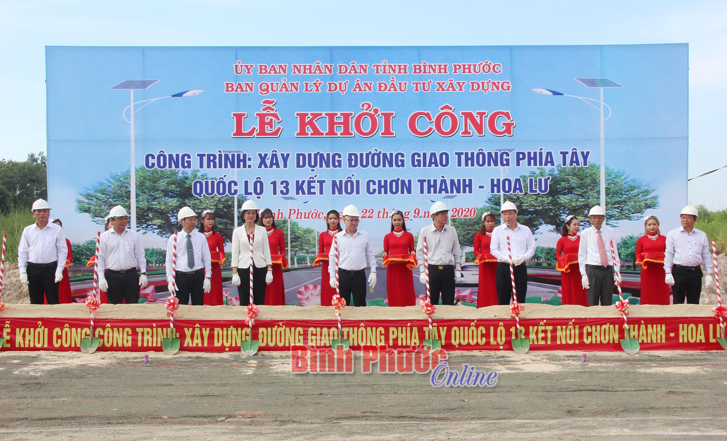Các đồng chí lãnh đạo tỉnh và Ban Quản lý dự án đầu tư xây dựng tỉnh, đươn vị thi công thực hiện nghi thức khởi công công trìnhTuyến đường dài 50km với vận tốc thiết kế 80km/h. Để thực hiện dự án, đơn vị thi công thực hiện giải tỏa mặt bằng rộng 65m, trong đó bề rộng mặt đường 2 bên là 22m. 2 bên đường thiết kế mương hở thoát nước, điểm giao cắt với các tuyến đường được xây dựng bê tông cốt thép; đi qua 3 huyện Chơn Thành, Hớn Quản và Lộc Ninh.
