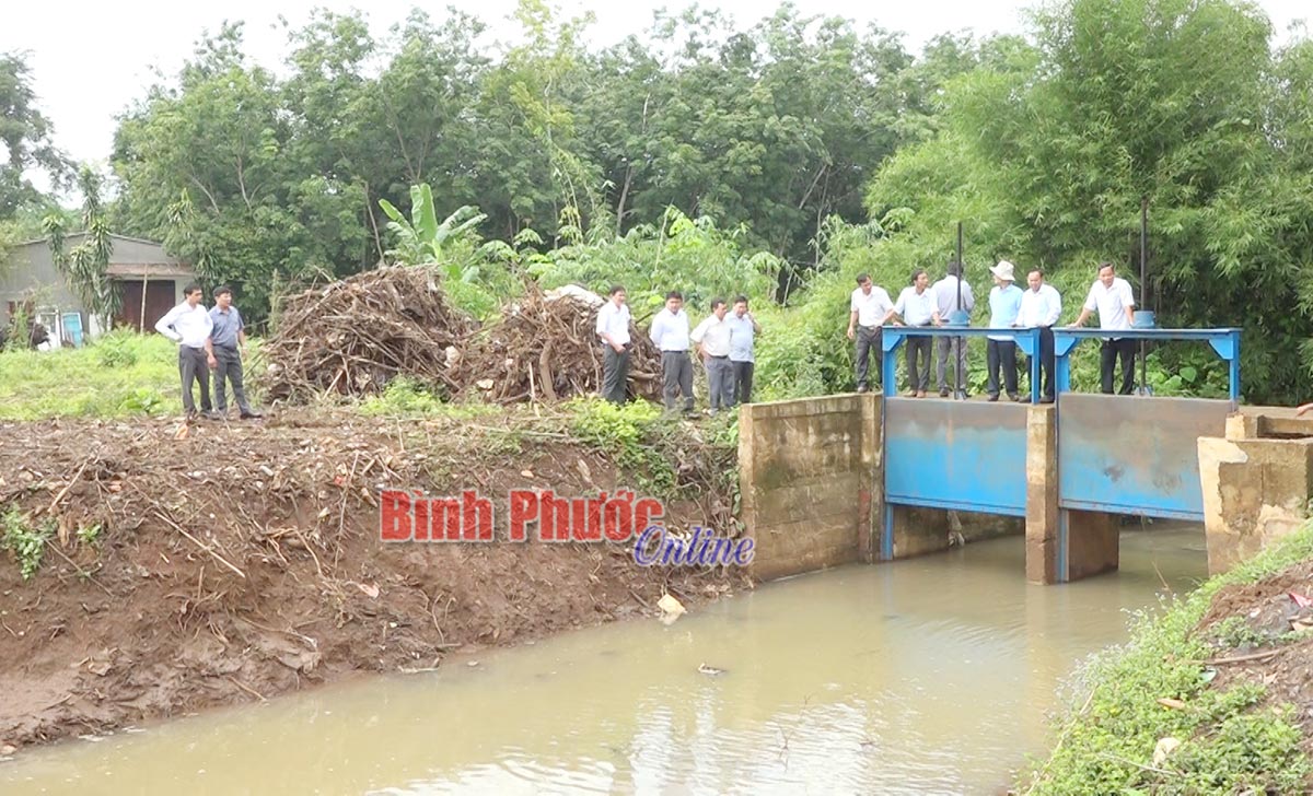 Đoàn giám sát đi kiểm tra thực tế tại đập thủy lợi Ấp Soc Du, phường An Lộc