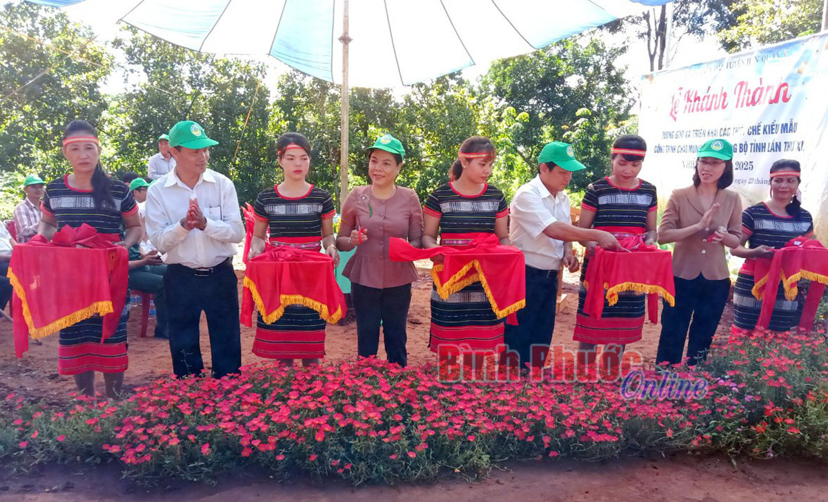 Các đại biểu cắt băng khánh thành đuờng bê tông tại ấp Sóc Dày