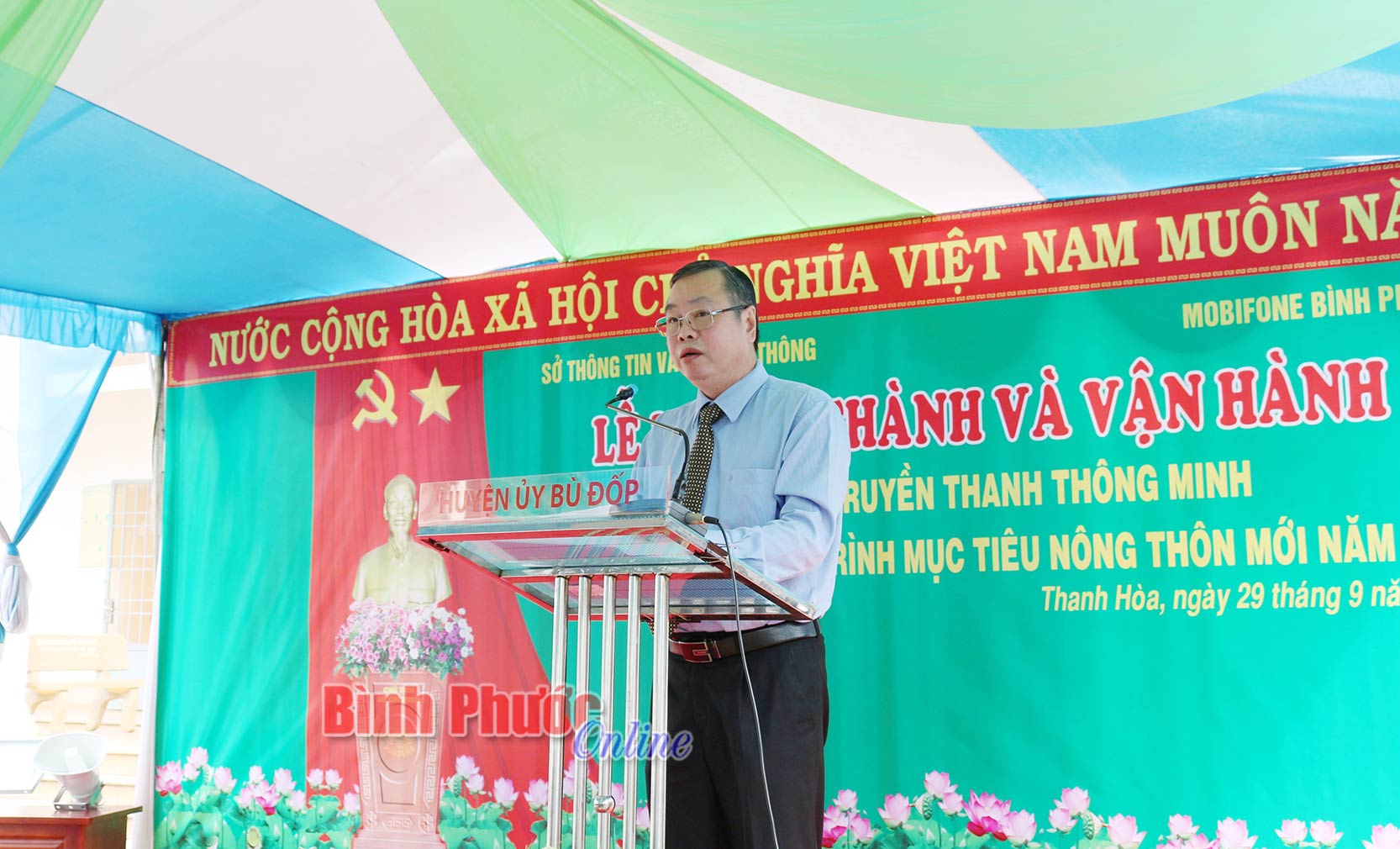 Phó chủ tịch UBND tỉnh Huỳnh Anh Minh phát biểu tại lễ khánh thànhPhát biểu tại buổi lễ, Phó chủ tịch UBND tỉnh Huỳnh Anh Minh đánh giá cao tinh thần trách nhiệm và sự phối hợp thực hiện dự án nhanh chóng, hiệu quả của Sở Thông tin và Truyền thông, MobiFone Bình Phước và các đơn vị liên quan.