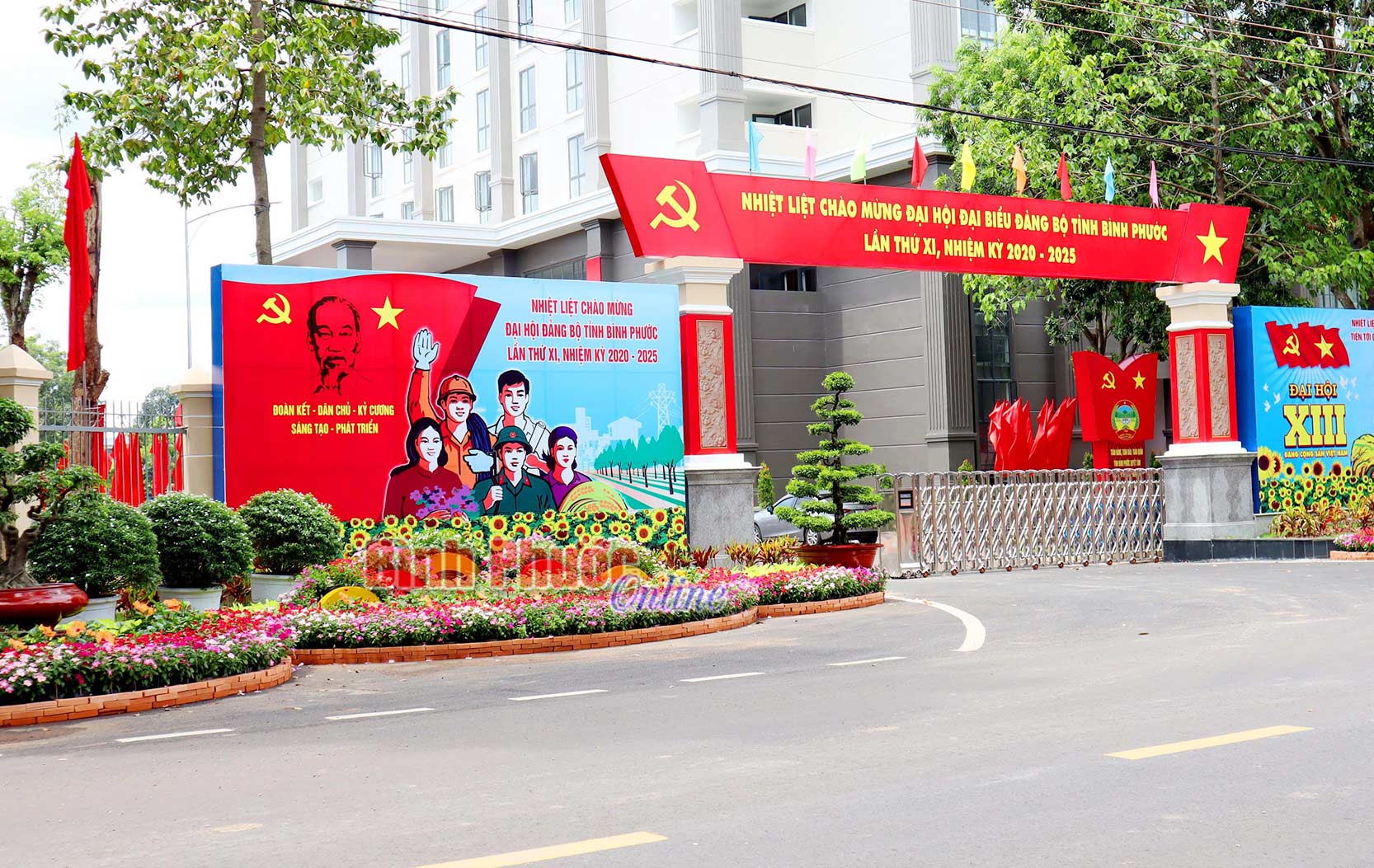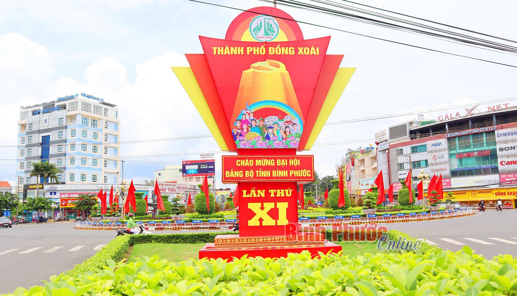Càng đến gần ngày khai mạc Đại hội Đảng bộ tỉnh, thành phố Đồng Xoài càng trở nên lộng lẫy hơn. Dọc các dãy phố chính, đường phố ngập tràn sắc cờ đỏ chào mừng Đại hội Đảng bộ tỉnh lần thứ XI.