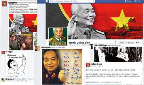 Những trang facebook hội những người Quảng Bình, những người yêu lịch sử,… đều phủ kín hình ảnh của đại tướng Võ Nguyên Giáp.