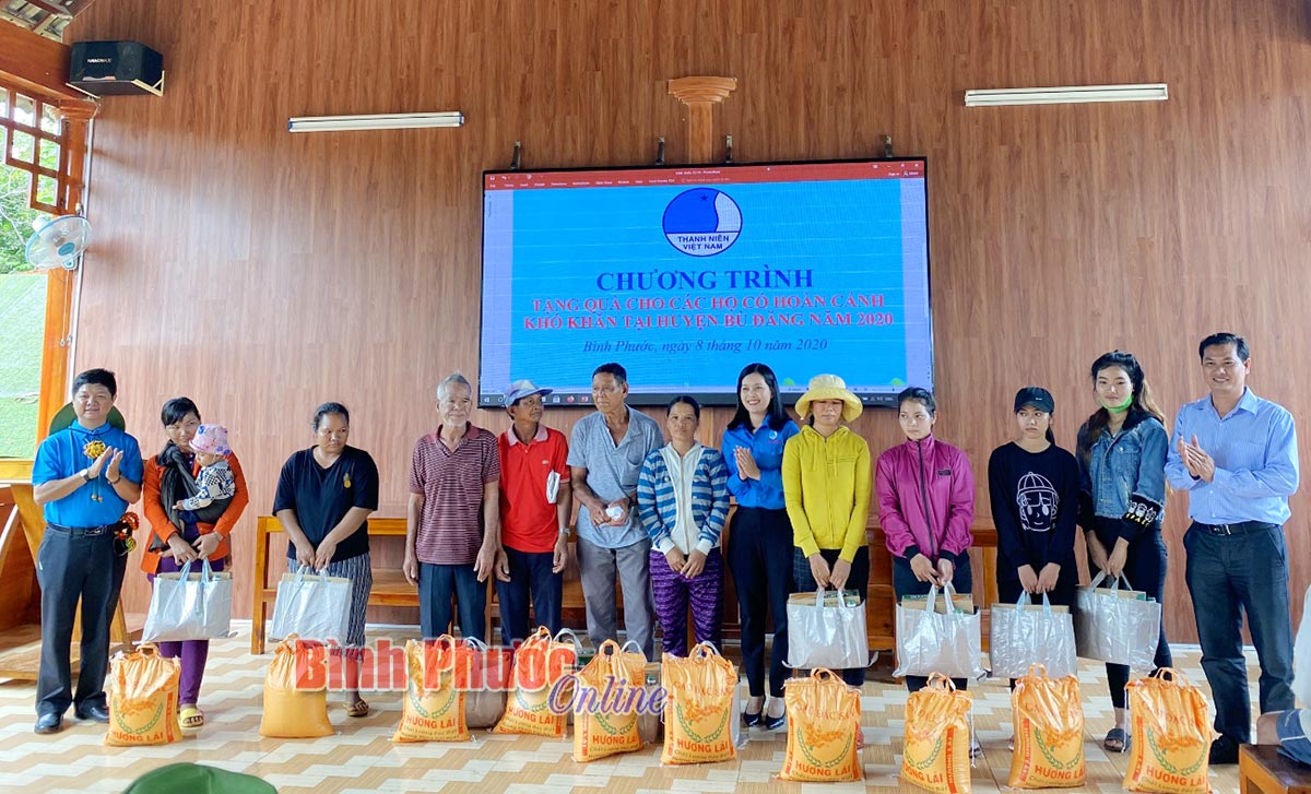 Các hộ có hoàn cảnh khó khăn của xã Bình Minh, huyện Bù Đăng được nhận quà từ Ban tổ chức hành trình “Tôi yêu Tổ quốc tôi” thành phố Đồng XoàiĐây là năm thứ 6, Hội LHTN thành phố Đồng Xoài tổ chức hành trình “Tôi yêu Tổ quốc tôi”. Qua các hoạt động trong hành trình nhằm giáo dục truyền thống cách mạng, truyền thống yêu nước cho thế hệ thanh niên; đồng thời rèn kỹ năng đoàn kết, tập hợp thanh niên, tạo động lực để thanh niên Đồng Xoài cống hiến sức trẻ cho quê hương.