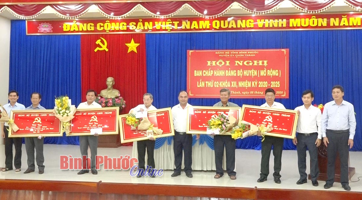 Dịp này UBND huyện Chơn Thành đã tặng giấy khen cho 5 tập thể và 10 cá nhân có thành tích xuất sắc trong công tác tổ chức Đại hội Đảng bộ các cấp nhiệm kỳ 2020-2025.