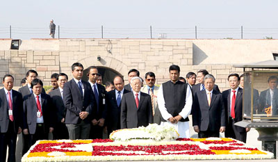 Tổng Bí thư Nguyễn Phú Trọng đến đặt vòng hoa và thăm Khu tưởng niệm Mahatma Gandhi tại thủ đô New Delhi sáng 20-11.