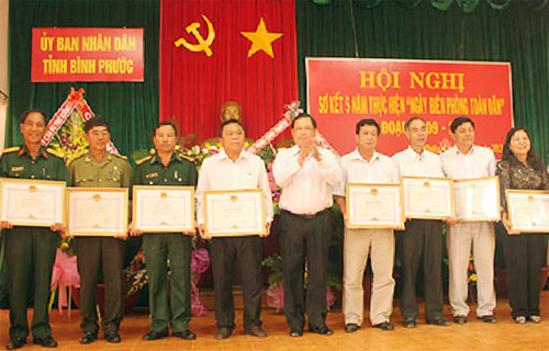 Trong 5 năm, Bộ đội biên phòng Bình Phước đã phối hợp địa phương tổ chức tuyên truyền 3.756 buổi, xây dựng 30 panô - áp phích, 95 khẩu hiệu tuyên truyền. Bộ đội biên phòng đã xây dựng 90 kế hoạch bảo vệ biên giới, tổ chức 48 phương án chiến đấu, tuần tra kiểm soát biên giới 16.732 lượt; khảo sát cắm 28 cột mốc trước thời hạn. Đặc biệt, tháng 9-2012, Bình Phước đã hoàn thành phân giới đoạn biên giới của tỉnh chất lượng hiệu quả, đúng tiến độ.