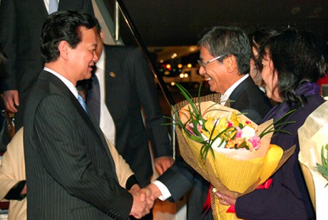 Đón Thủ tướng Nguyễn Tấn Dũng và Đoàn cấp cao Việt Nam tại sân bay có Đại sứ Nhật Bản tại Việt Nam; Đại sứ Việt Nam tại Nhật Bản Đoàn Xuân Hưng cùng đông đảo cán bộ, nhân viên, cộng đồng người Việt tại Nhật Bản.