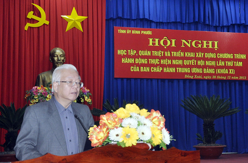 Ngày 30-12-2013, Tỉnh ủy Bình Phước đã tổ chức hội nghị triển khai, học tập quán triệt Nghị quyết Hội nghị Ban chấp hành trung ương Đảng lần thứ 8, khóa XI (Nghị quyết TW8). Đồng chí Nguyễn Tấn Hưng, Ủy viên BCH Trung ương Đảng, Bí thư tỉnh ủy chủ trì hội nghị. Báo cáo viên là Giáo sư Tiến sĩ khoa học (GS-TSKH) Phạm Mạnh Hùng, Phó chủ tịch chuyên trách Hội đồng khoa học cơ quan Đảng Trung ương.