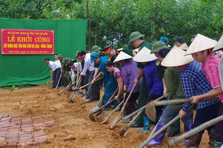 | LLVT tỉnh Thái Nguyên giúp nhân dân xây dựng nhà văn hóa xóm Nà Lẹng, xã Đồng Thịnh, huyện Định Hóa. |