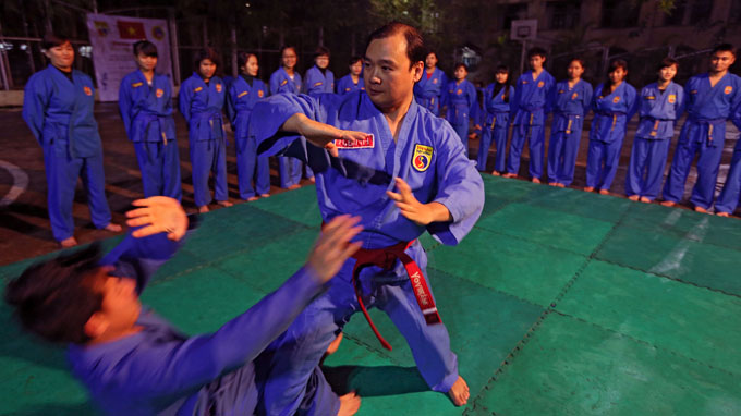 Người phát ngôn Bộ Ngoại giao Lê Hải Bình (trái) trong một buổi dạy võ