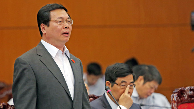Bộ trưởng Bộ Công thương Vũ Huy Hoàng trả lời chất vấn đại biểu Quốc hội tại phiên họp của Ủy ban Thường vụ Quốc hội sáng 1-4